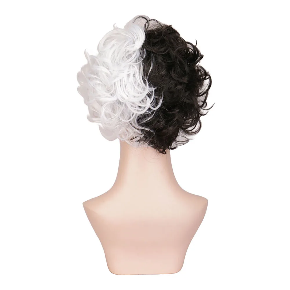 Парик для косплея Cruella, с короткими вьющимися волосами, с натура...