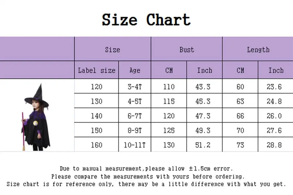 Точки пули:1. Обратите внимание: Если вы покупаете костюм летучей мыши, вы получите 1 * платье и 1 * головную повязку; Другие будут 1 * платье и 1 * шляпа. Посылка не включает носки, веники и другие аксессуары.2. Множество вариантов: длинное фиолетовое платье; Короткий костюм фиолетовой летучей мыши; Костюм фиолетового плаща; Вы можете выбрать костюм в соответствии с предпочтениями вашего ребенка.3. Карнавальный костюм ведьмы: подходит для детей в возрасте 1. От 5 до 6 лет. Костюм с фиолетовым плащом подходит для детей в возрасте от 3 до 11 лет. Очень Популярные костюмы на Хэллоуин для маленьких ведьм, игривые Ролевые костюмы для игр, костюмы для Хэллоуина для милых маленьких девочек.4. Легко сочетаются: он может сочетаться с черными или в горошек, с круглым носком, в ретро-стиле, с небольшой метлой и т. Д. Чтобы создать полный образ маленькой ведьмы.5. Подходит для: вечерние костюмы на Хеллоуин, встречи с соседями, парад на Хэллоуин, выступления на сцене, вечерние костюмы для косплея, вечерние праздники, Рождество и т. д.Спецификация:Наименование товара: Детские костюмы на ХэллоуинКатегория товара: костюм для девочек на ХэллоуинСтиль: костюм маленькой ведьмыПодходит для толпы: 1. От 5 до 6 лет детей. Костюм с фиолетовым плащом подходит для детей в возрасте от 3 до 11 летПодходящие сезоны: четыре сезона, Хэллоуин, РождествоУпаковочный лист:Костюм летучей мыши1 * платье1 * повязка на головуДругие костюмы1 * платье1 * шляпаПримечание:Пожалуйста, допускайте незначительные отклонения в размере из-за ручного измерения, и освещение на фотографии может привести к разнице в цвете, чем в реальной жизни.