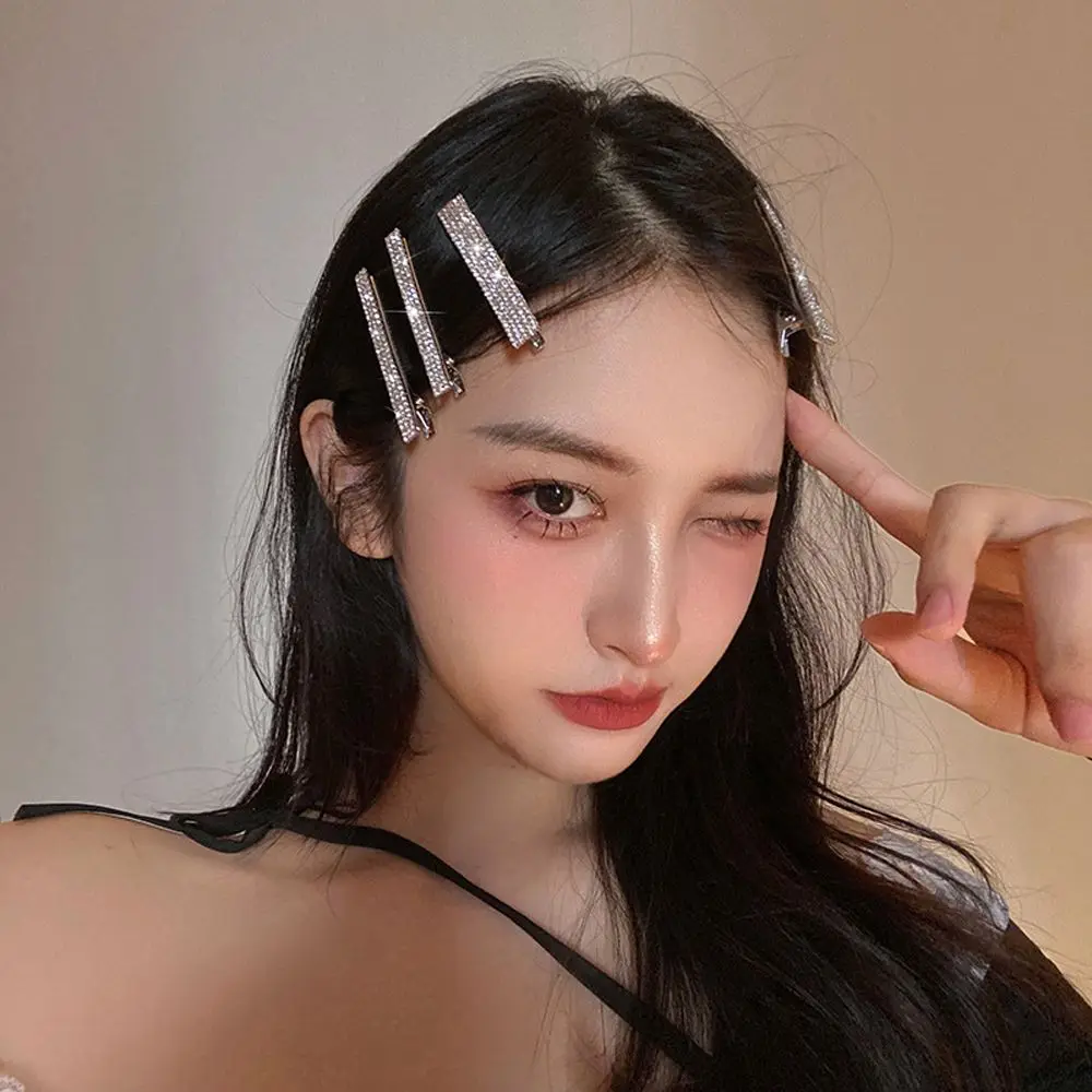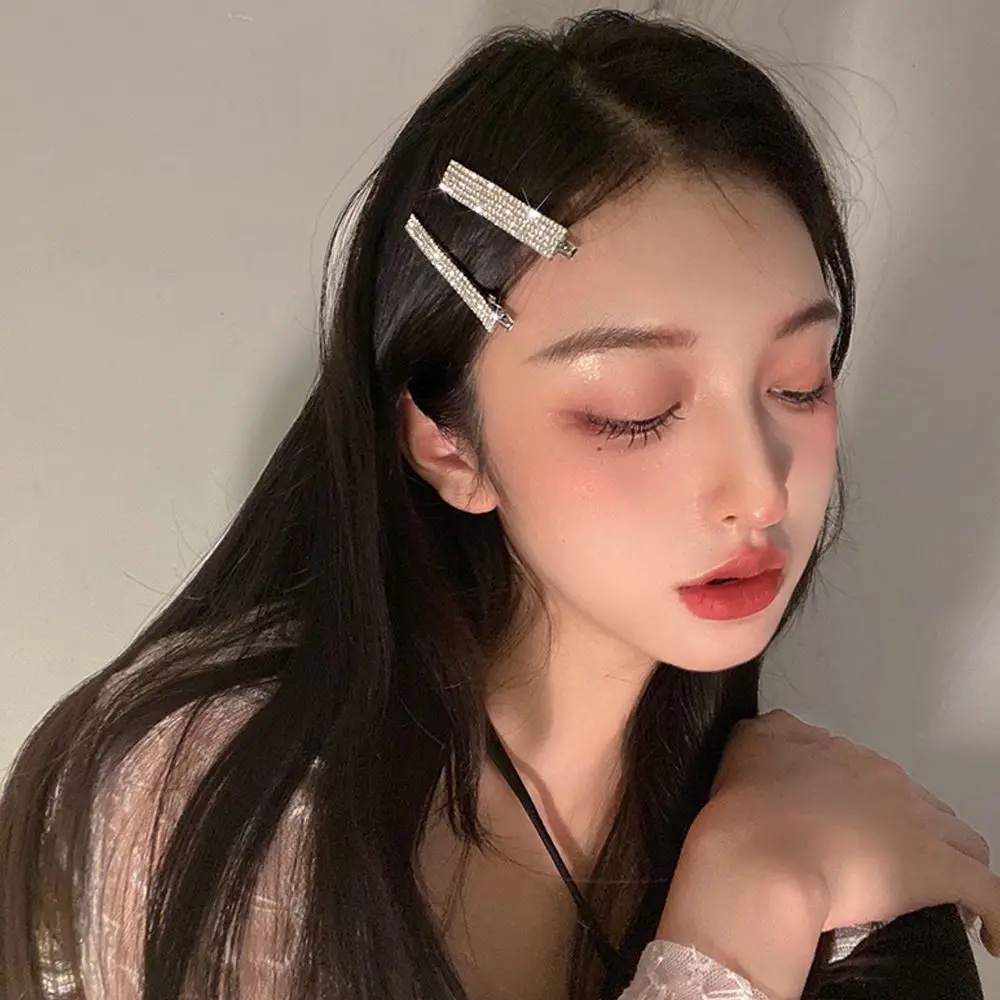 Симпатичные Элегантные боковые зажимы, прямоугольные кристаллы для девочек, женские заколки для волос, шпильки для волос в Корейском стиле, заколки