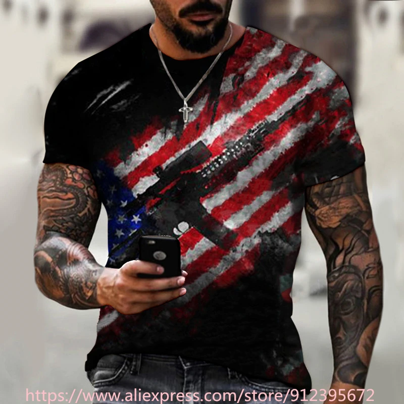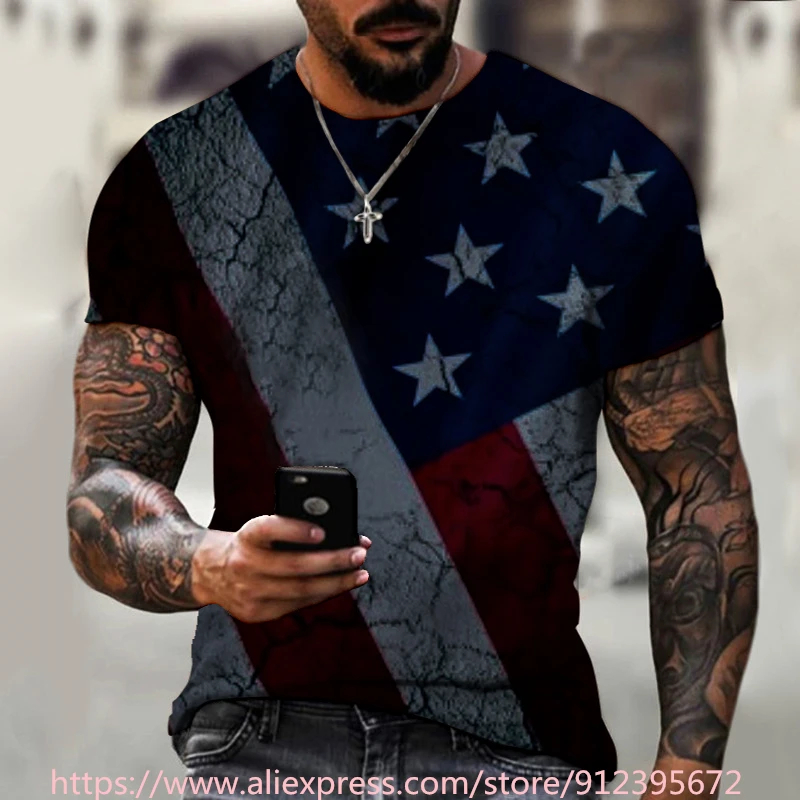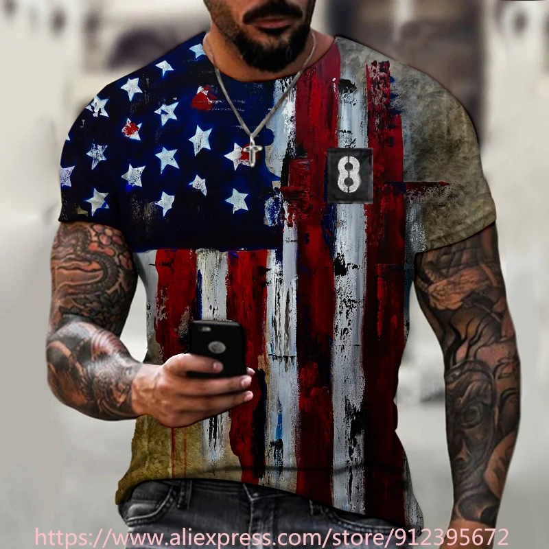 Футболка мужская оверсайз с круглым вырезом, Повседневная модная тенниска с принтом 3D, майка с американским флагом, брендовая одежда, лето