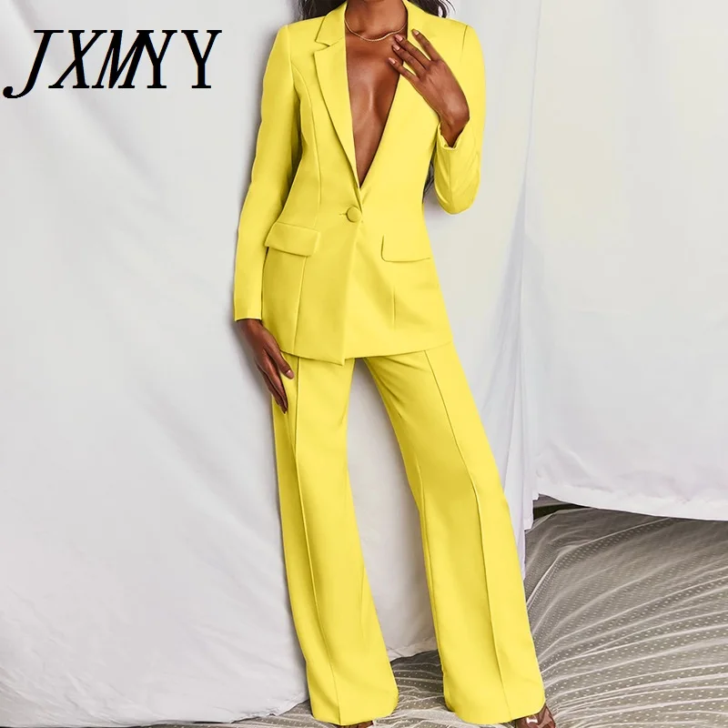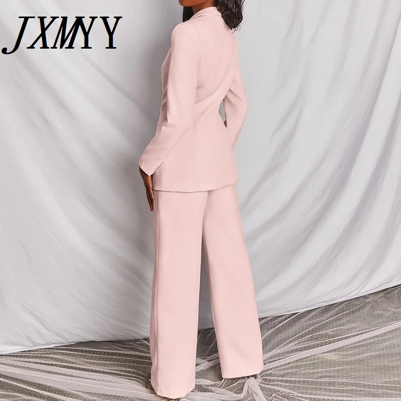 Классический однобортный Блейзер JXMYY на пуговицах, комплект из двух предметов, деловой костюм для женщин, брючный костюм для офиса, красный, розовый