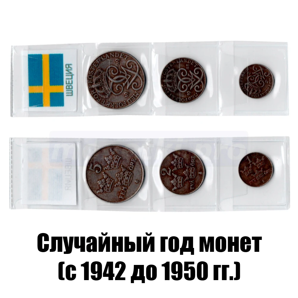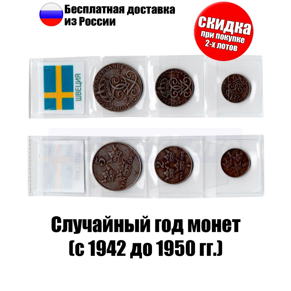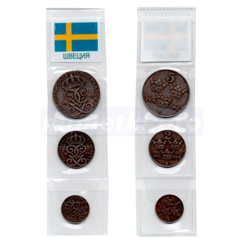 Монеты Швеции. Комплект из 3-х монет номиналом 1, 2, 5 эре (1942-1950 гг.)