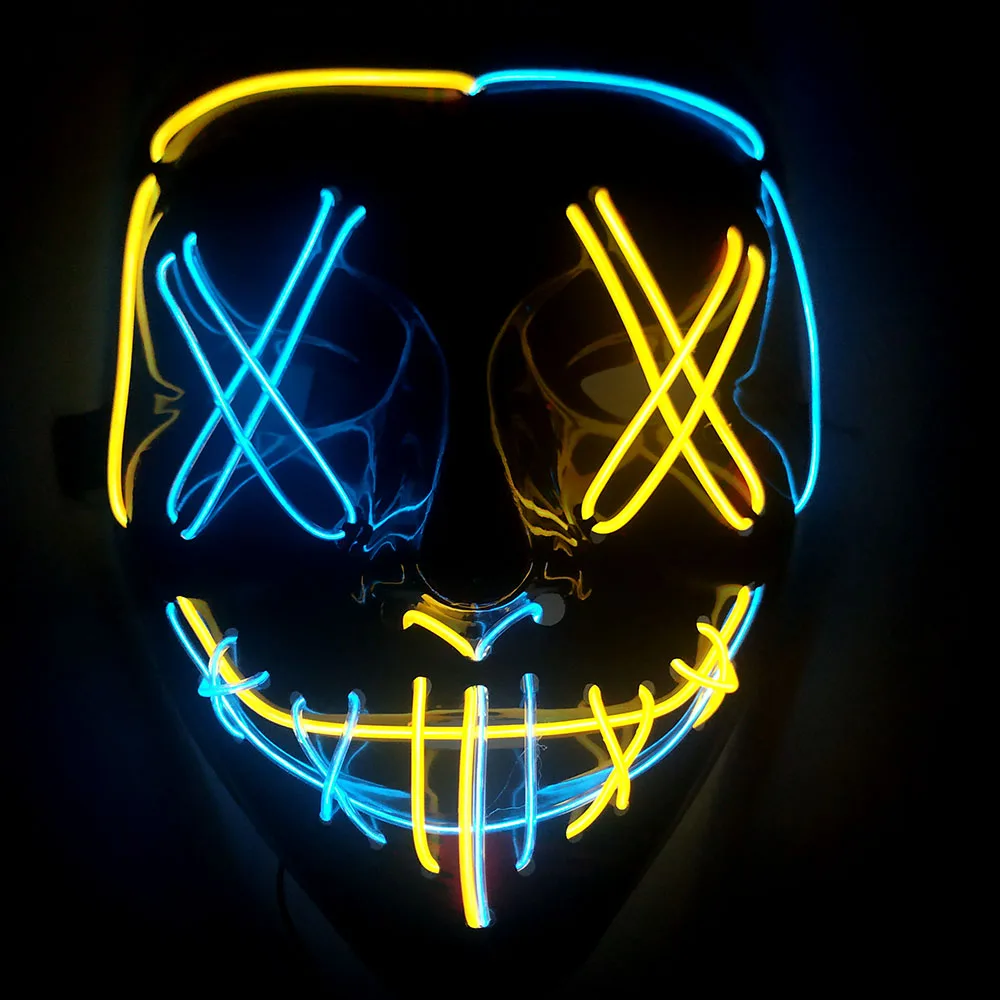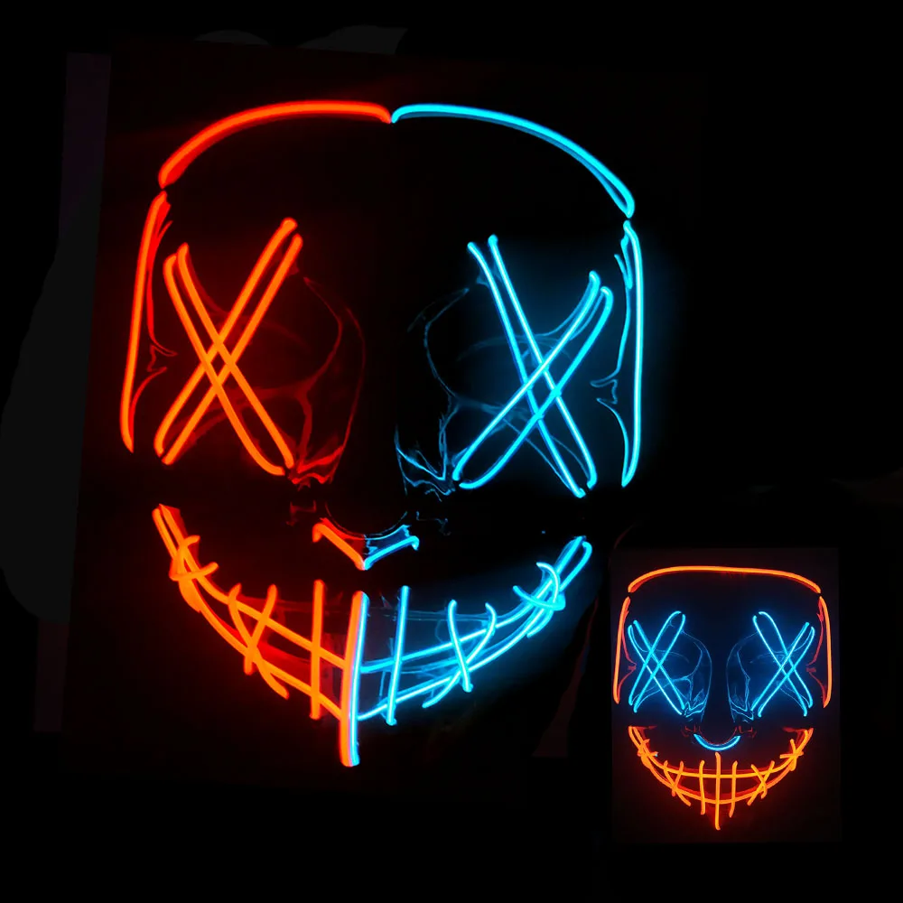 2021 Хэллоуин светодиодсветодиодный страшная маска для вечерние НКИ ужас двухцветная маска для маскарада яркая фотомаска