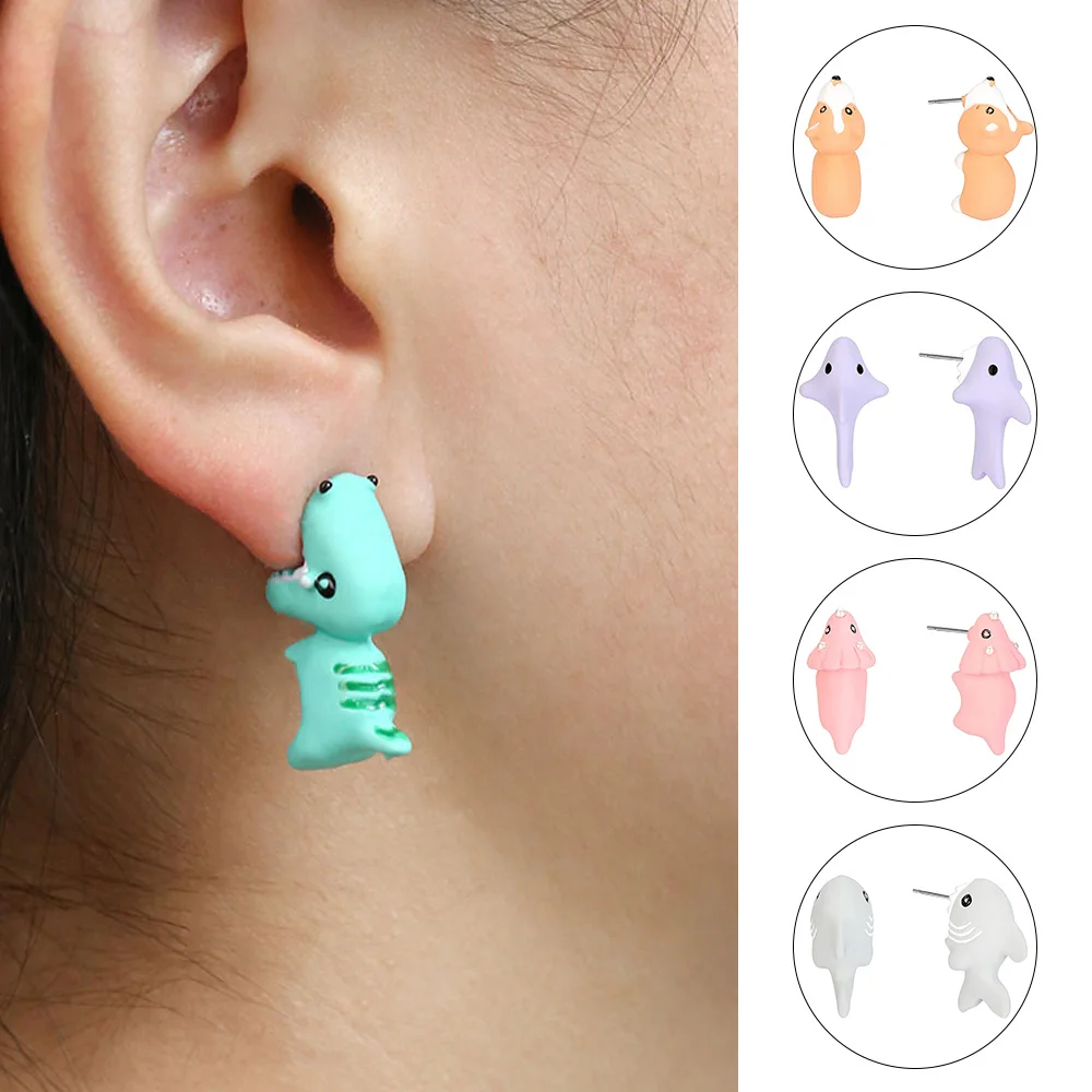 Модные милые серьги из мягкой глины в виде животных, украшения для ушей для девочек, маленький динозавр для женщин, забавный подарок с мультяшным динозавром для вечеринки