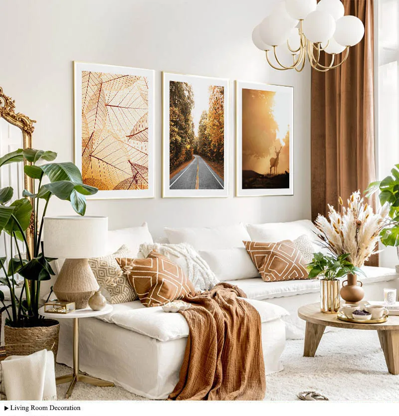 Солнечный свет желтый лесной лист осенний пейзаж эстетический плакат рассвет художественная живопись скандинавский холст печать Настенная картина Декор для комнаты