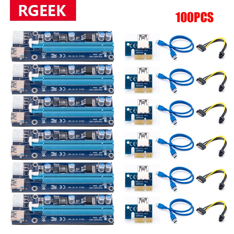 RGEEK 100 шт. Golden VER009 USB 3,0 PCI-E pcie Riser VER 009S Express 1X 4x 8x 16x Райзер адаптер карта SATA