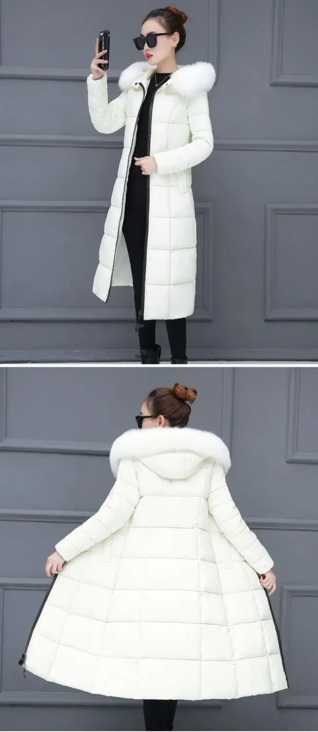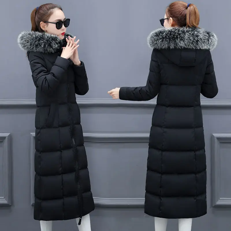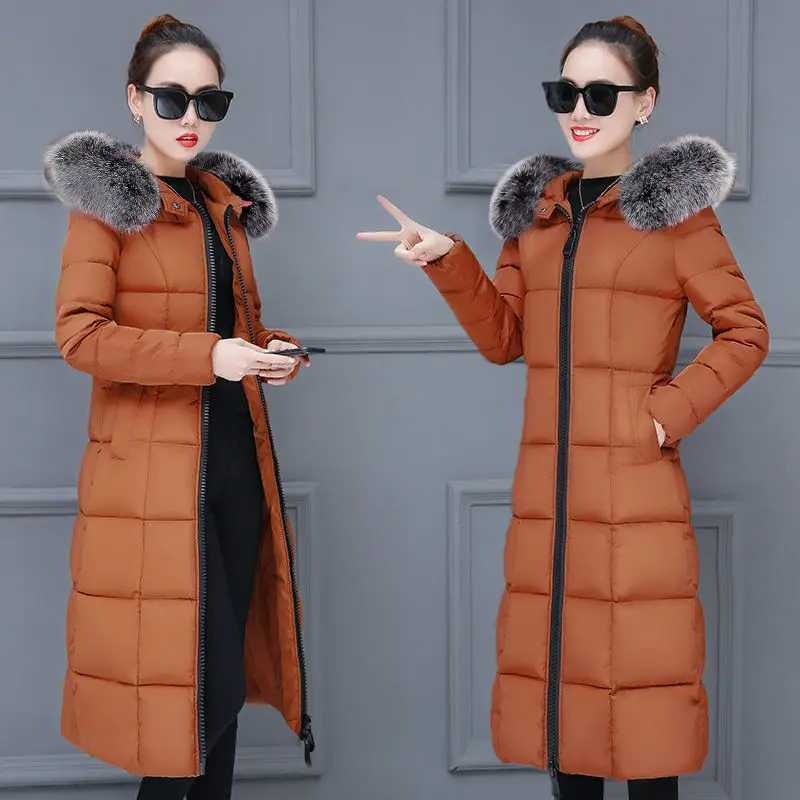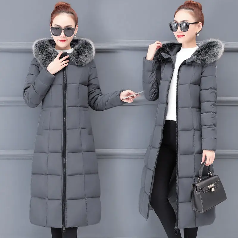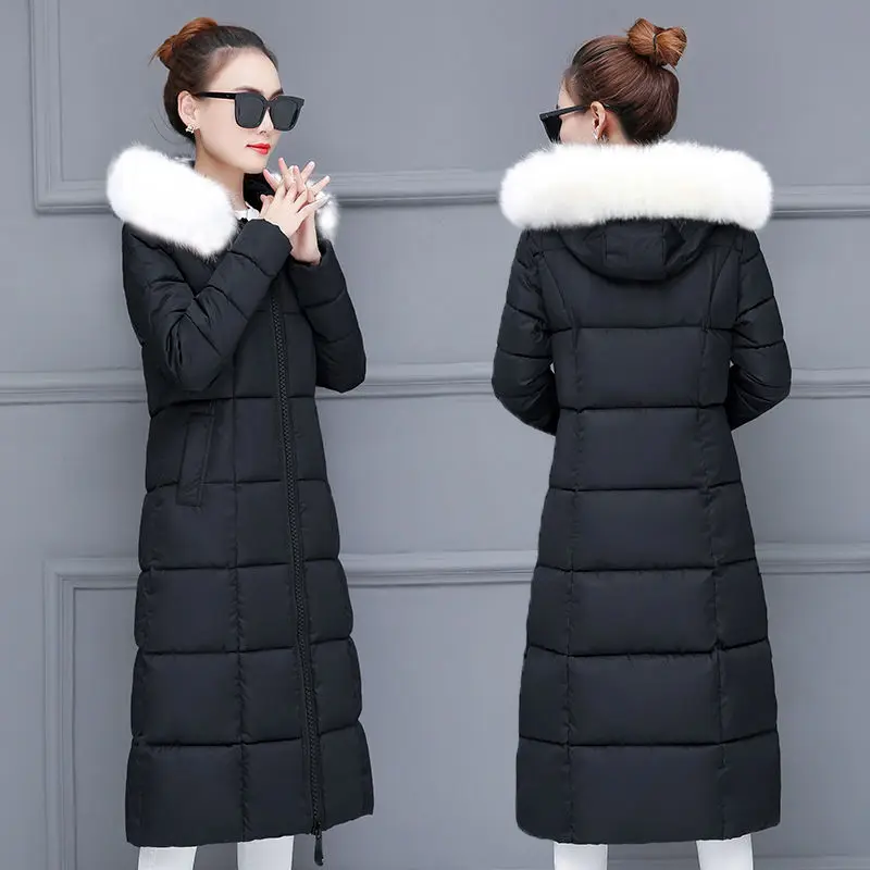 Женская куртка-парка, всесезонное пальто с большим меховым воротником, длинное хлопковое пальто ниже колена, Женское пальто, зима 9061440