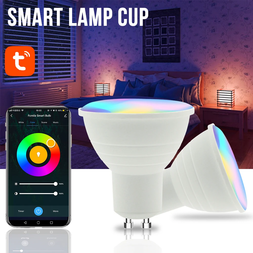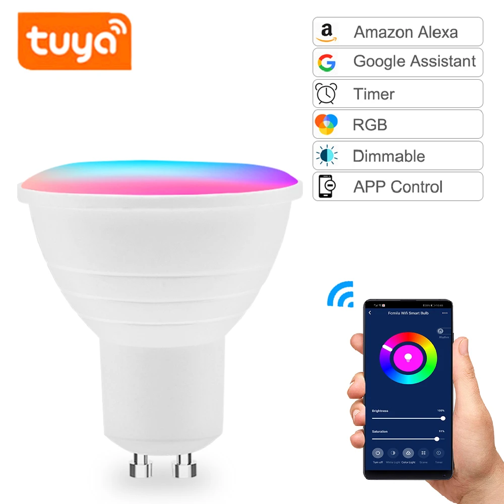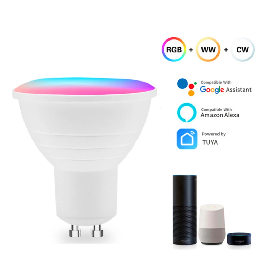 Умный светодиодный светильник TUYA GU10 RGB + WW + CW, 6 Вт, 85-265 В переменного тока, Wi-Fi, умная лампа GU10 с поддержкой Google Assistant, Alexa и голосовым управлением