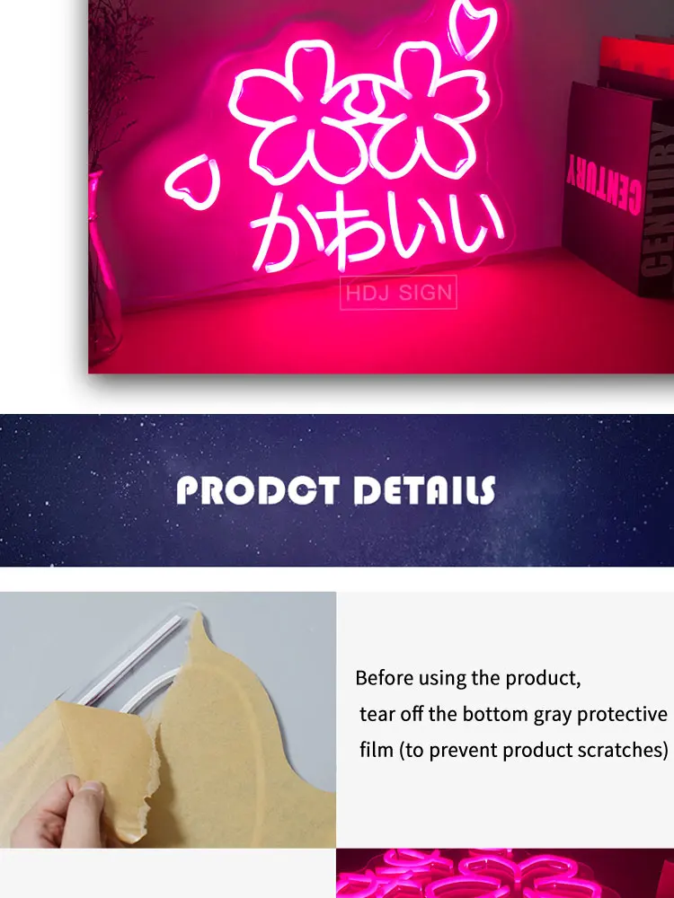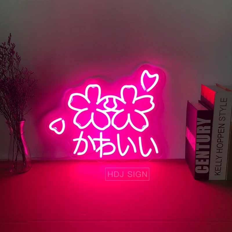 Неоновая вывеска Sakura с логотипом Kawaii на заказ, японские буквы, светодиодный светильник, Настенный декор для спальни, кафе, магазина, салона, люминесцентная вывеска