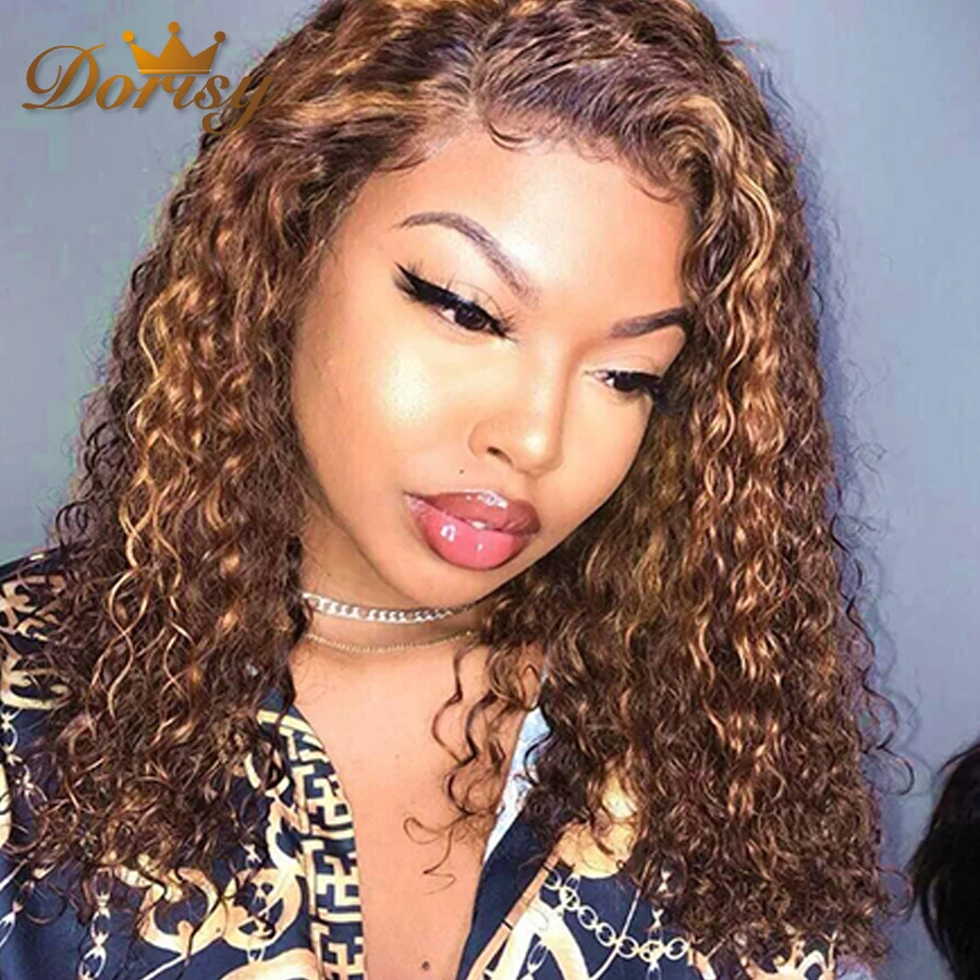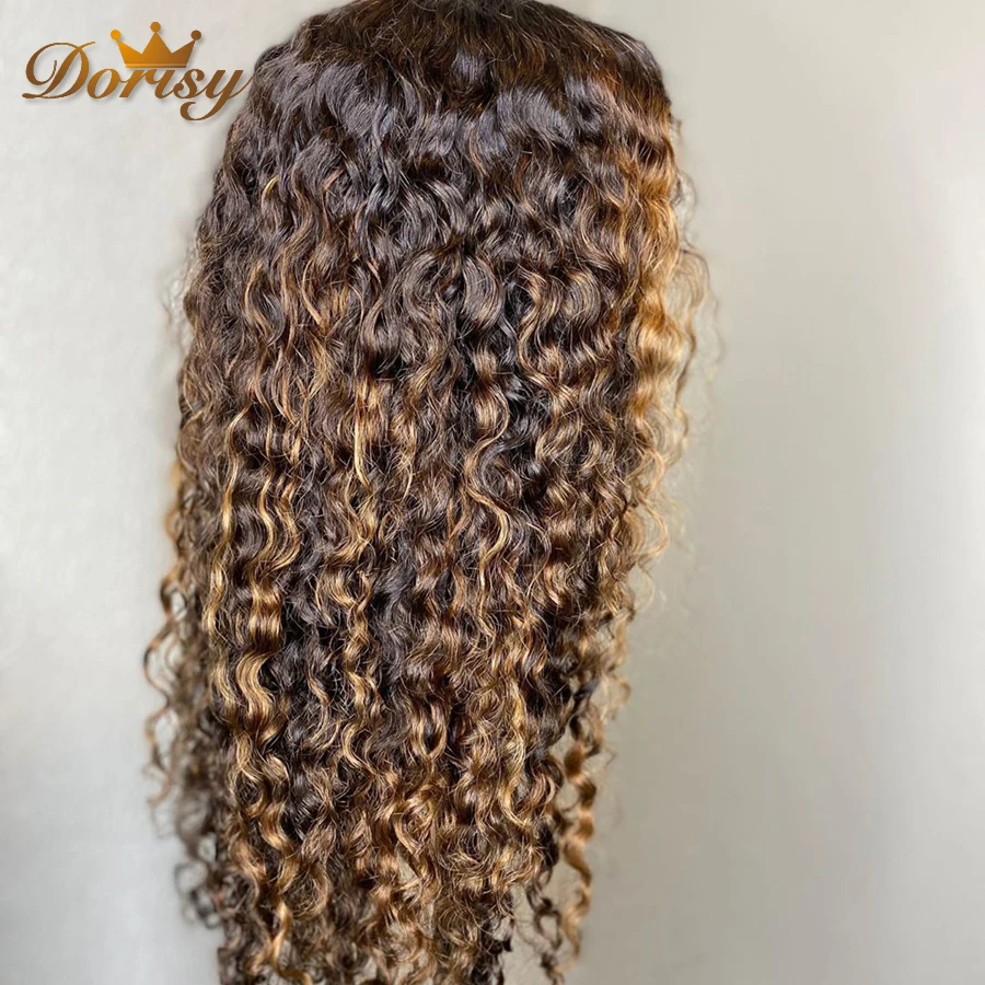 Парик из человеческих волос с глубокими вьющимися волосами, медово-...