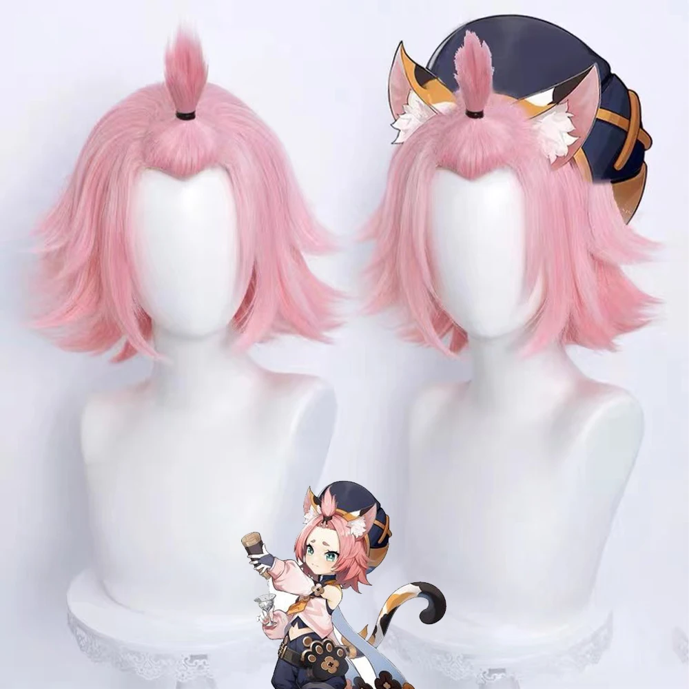 Парик для косплея Genshin Impact Diona, Короткие Розовые термостойк...