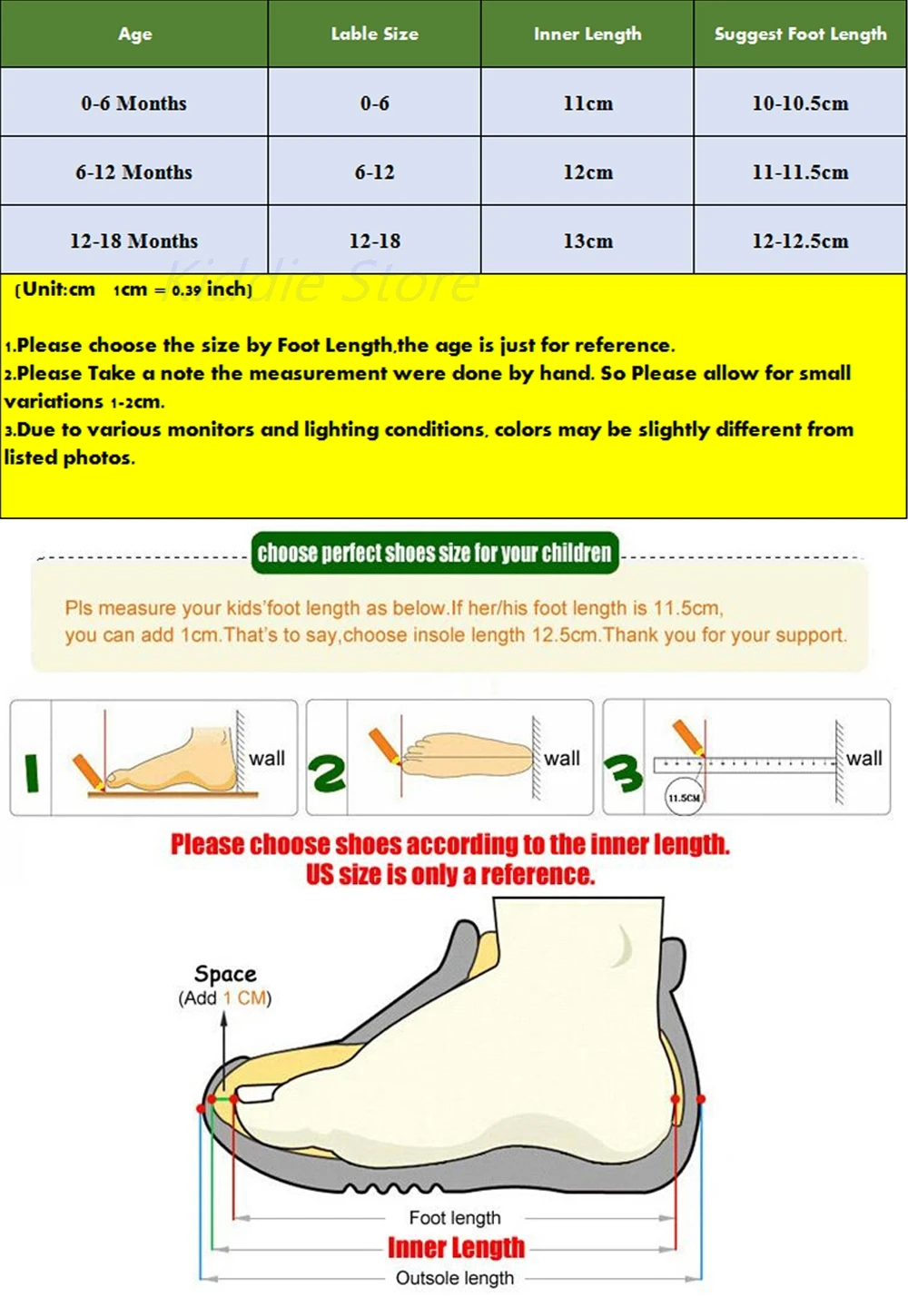 (Единица измерения: см, 1 см = 0,39 дюйма)1. Пожалуйста, выберите размер по длине стопы, возраст указан только для справки.2. Пожалуйста, обратите внимание, что измерения были сделаны вручную. Поэтому возможны незначительные погрешности в 1-2 см.3. Из-за различных мониторов и условий освещения цвета могут немного отличаться от приведенных фотографий.
