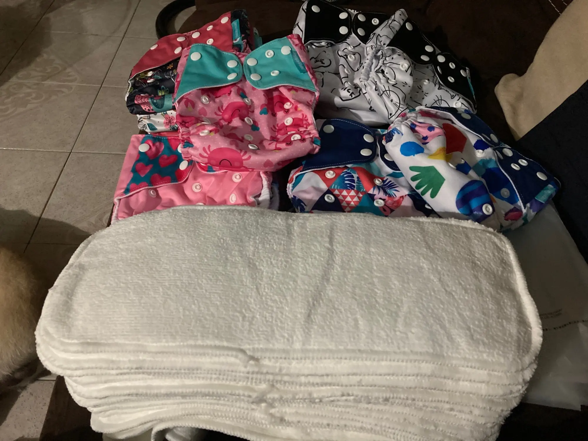 Chegaram rápido e em perfeito estado. As fraldas são lindas e o produto de excelente qualidade.