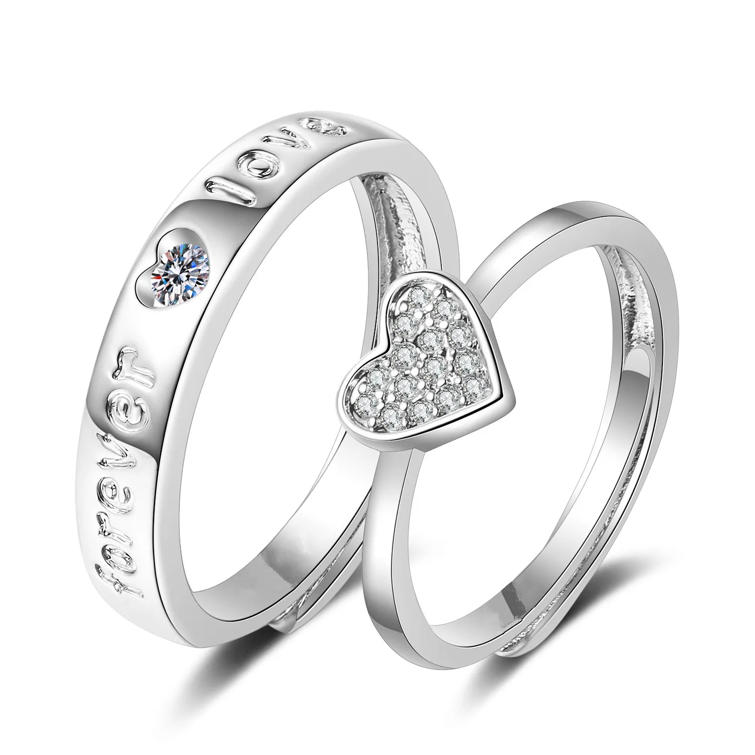 Новинка 2 шт. набор колец для влюбленных с сердцем из циркона парны...