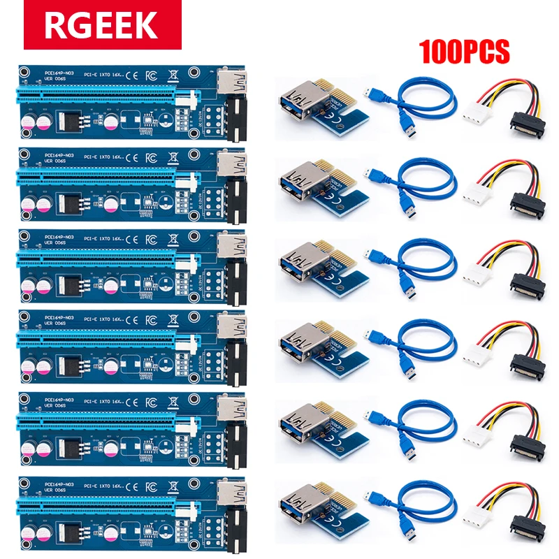 RGEEK 100 шт. Ver006 Usb 3.0 Pci-E Райзер Ver 006S GPU Express 1X 4X 8X 16X удлинитель адаптера карты Sata 15Pin к 4 Pin кабель питания