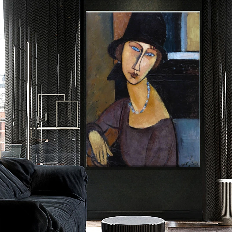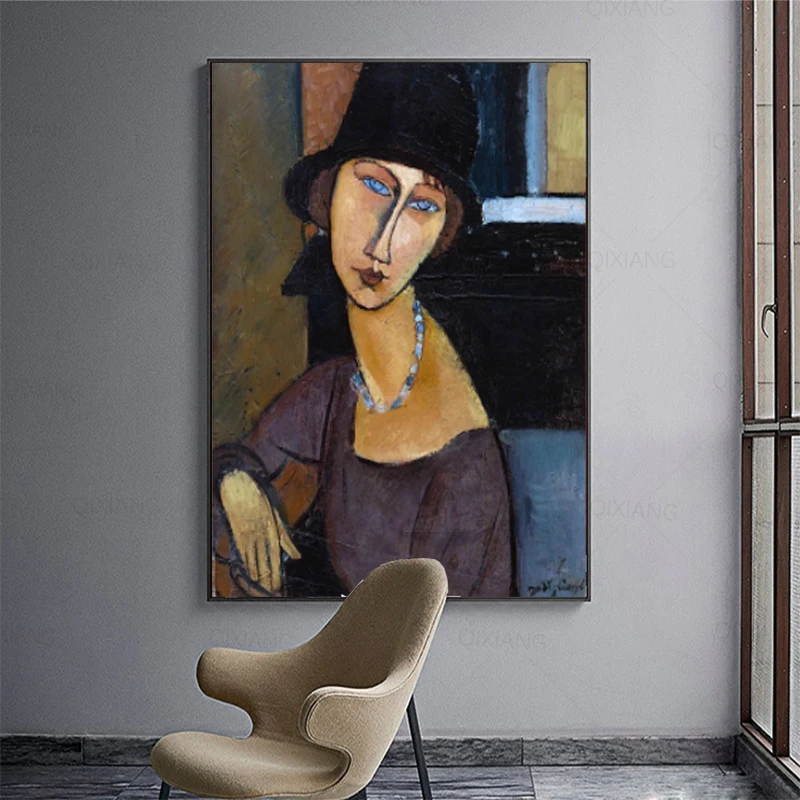 Modigliani джинна хебутерн с шляпой и ожерельем картина маслом на холсте искусство эстетическое настенное украшение домашнее украшение