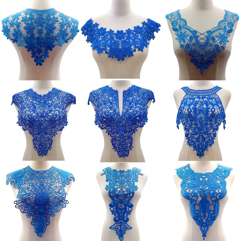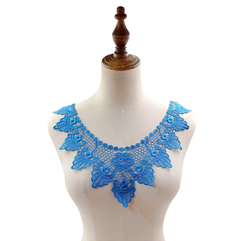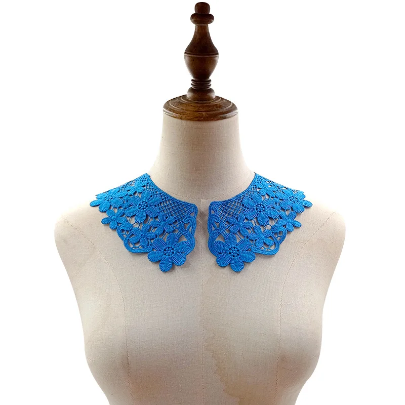 Женская блузка с синим цветочным воротником, накладной декоративный воротник, аксессуары из кружевной ткани