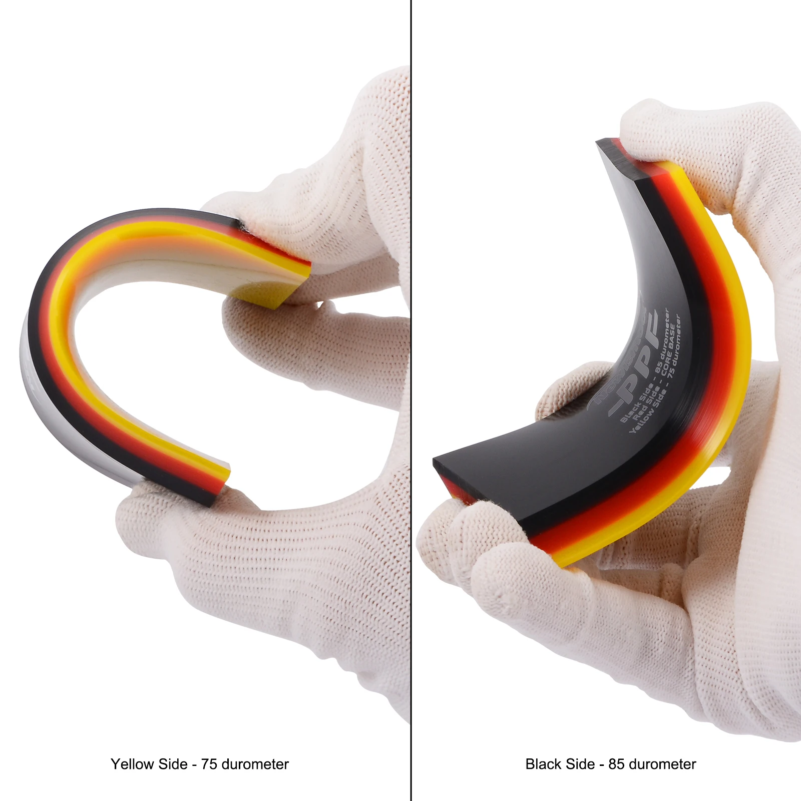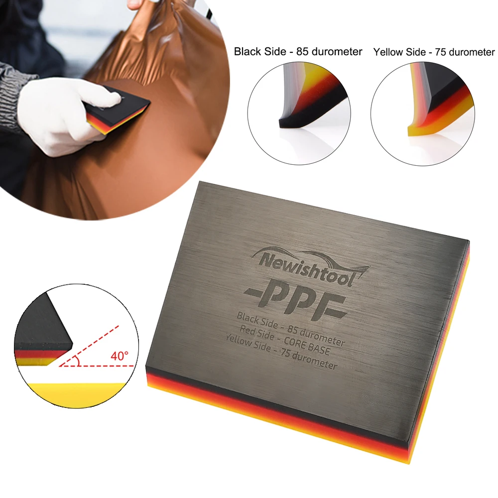 1. Три слоя, две твердости: это полезно в нескольких упаковочных работах, которые могут улучшить вашу эффективность работы. Вам не нужно часто менять инструменты.2. PPF Материал: гибкий резиновый скребок прочный и маслостойкий. Его можно использовать влажным или сухим способом, не оставляя царапин на поверхностях во время работы.3. Скошенный разрез хорошо подходит для угловой/угловой упаковки. Этот Ракель имеет специальный разрез на 40 градусов, который больше подходит для обертывания углов.