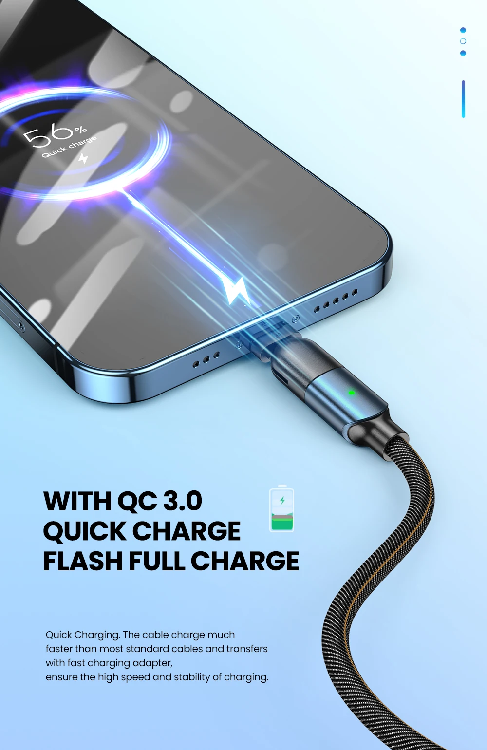 >Быстрая зарядка 3A+Передача данных 480Mbps