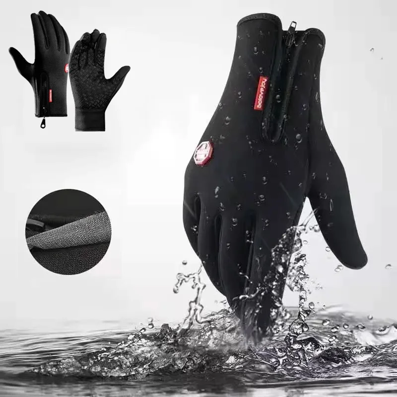 Мужские зимние водонепроницаемые флисовые перчатки на молнии с сенс...