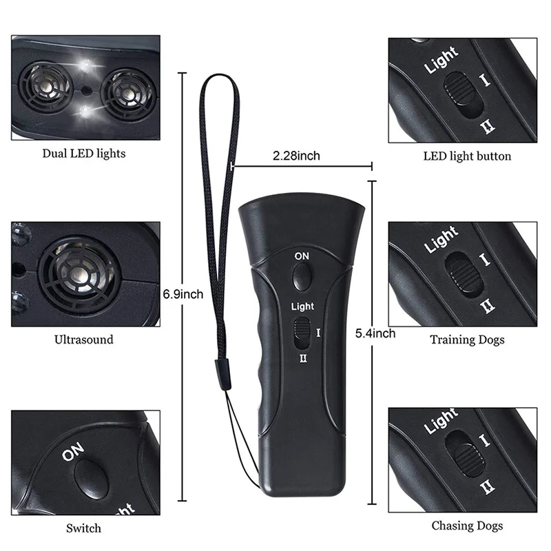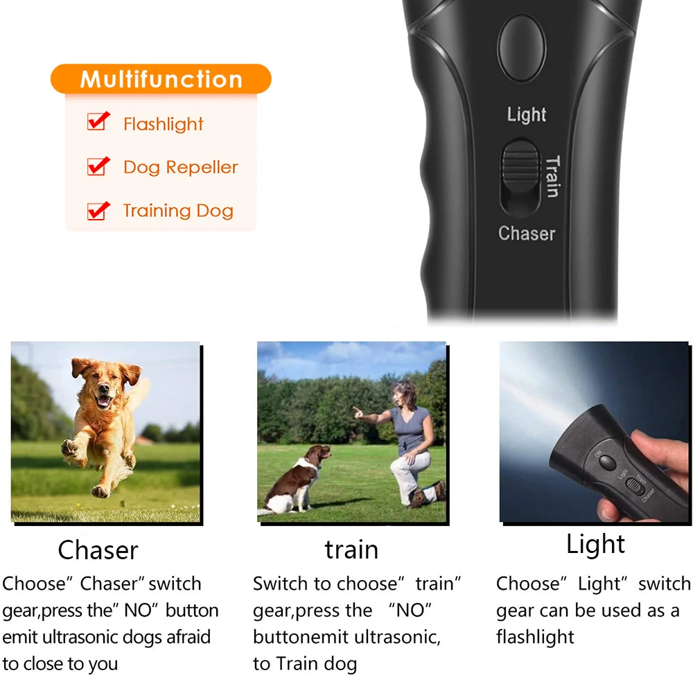 Ультразвуковой Отпугиватель собак, светодиодный фонарик, товары для домашних животных, дрессировочное оборудование, двойная головка, устройство против лая, немецкий овчаг