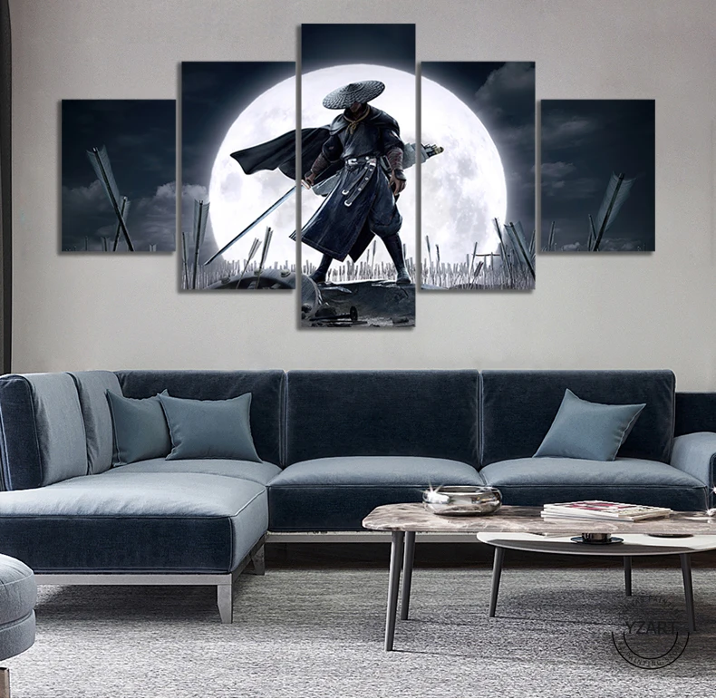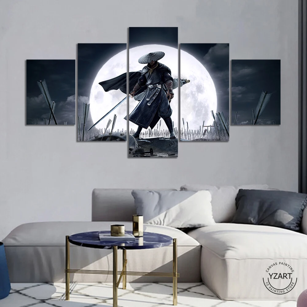 Плакат без рамки для видеоигр в виде ночной сцены, Декор для дома, японский самурай, холст, картина маслом, настенное искусство, подарок