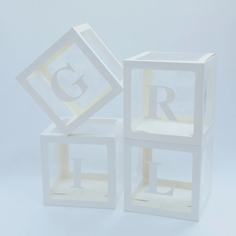 30 см белая прозрачная коробка для мальчиков и девочек 1 первый день Рождения Вечеринка свадебное украшение Детский День Рождения Алфавит на заказ воздушный шар коробка