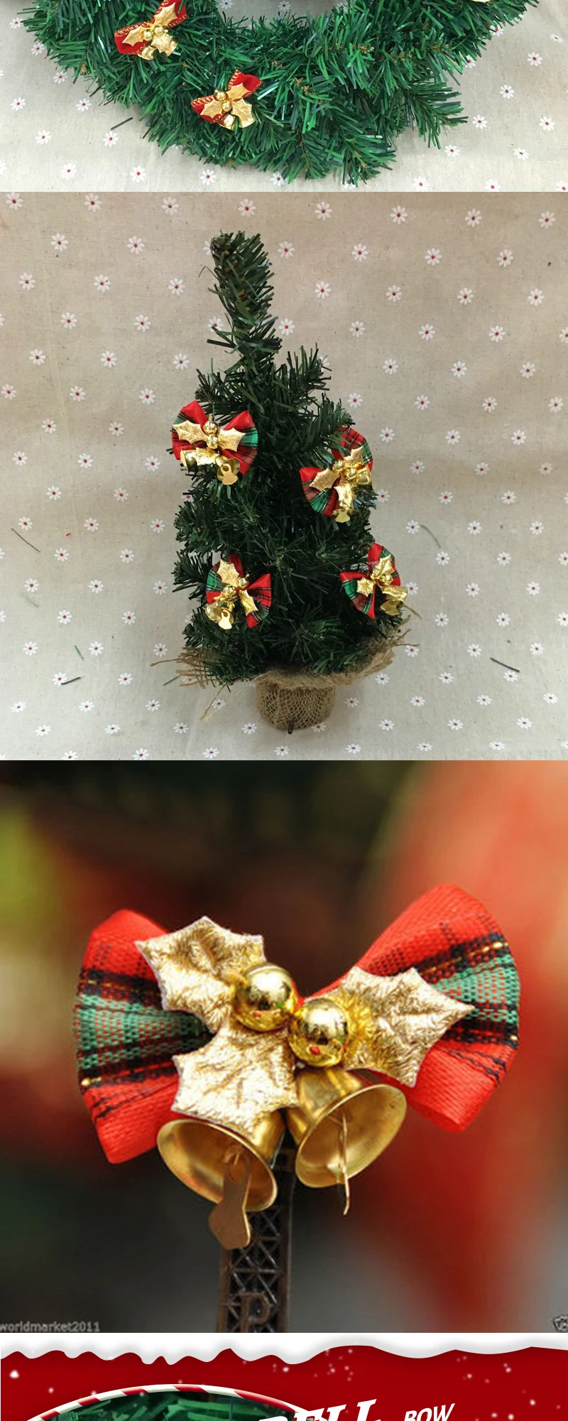 Красный Рождественский бант, железный колокольчик, украшение, мини-бант, Рождественский венок, украшения для рождественской елки, композиция, аксессуары, подвески