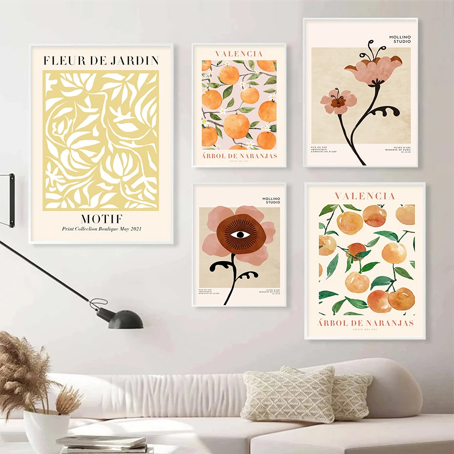 Абстрактный лимон, цветок, оранжевый, растение, винтажный бежевый постер, холст, живопись, искусство, печатные картины, гостиная, интерьер, домашний декор