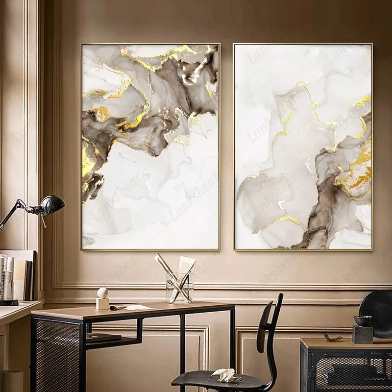 Золотая современная абстрактная Настенная картина с изображением ли...