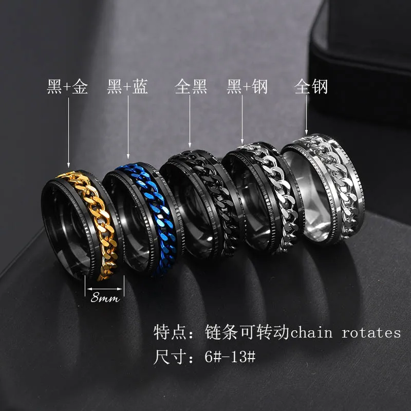 Вращающиеся кольца-антистресс для мужчин, титановая цепочка из нерж...