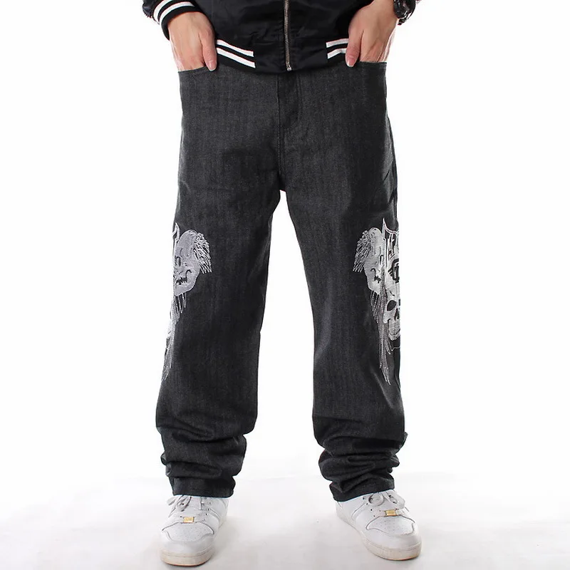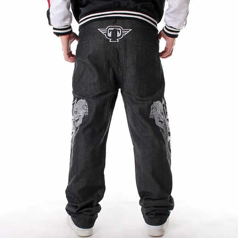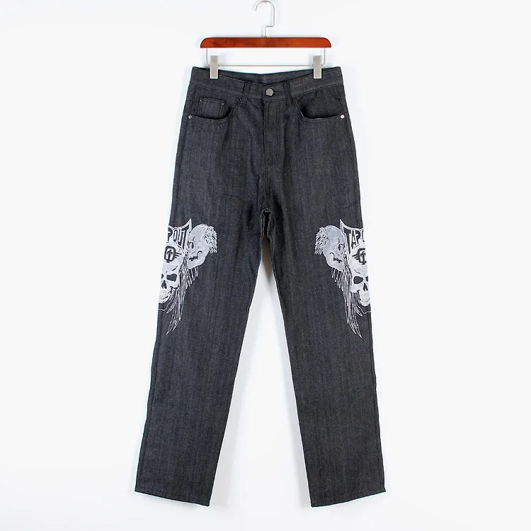 Распродажа, новые джинсы в полоску, свободные джинсы в стиле хип-хоп, мужские джинсы с принтом в стиле хип-хоп, вышитый череп, приток повседневного скейтборда