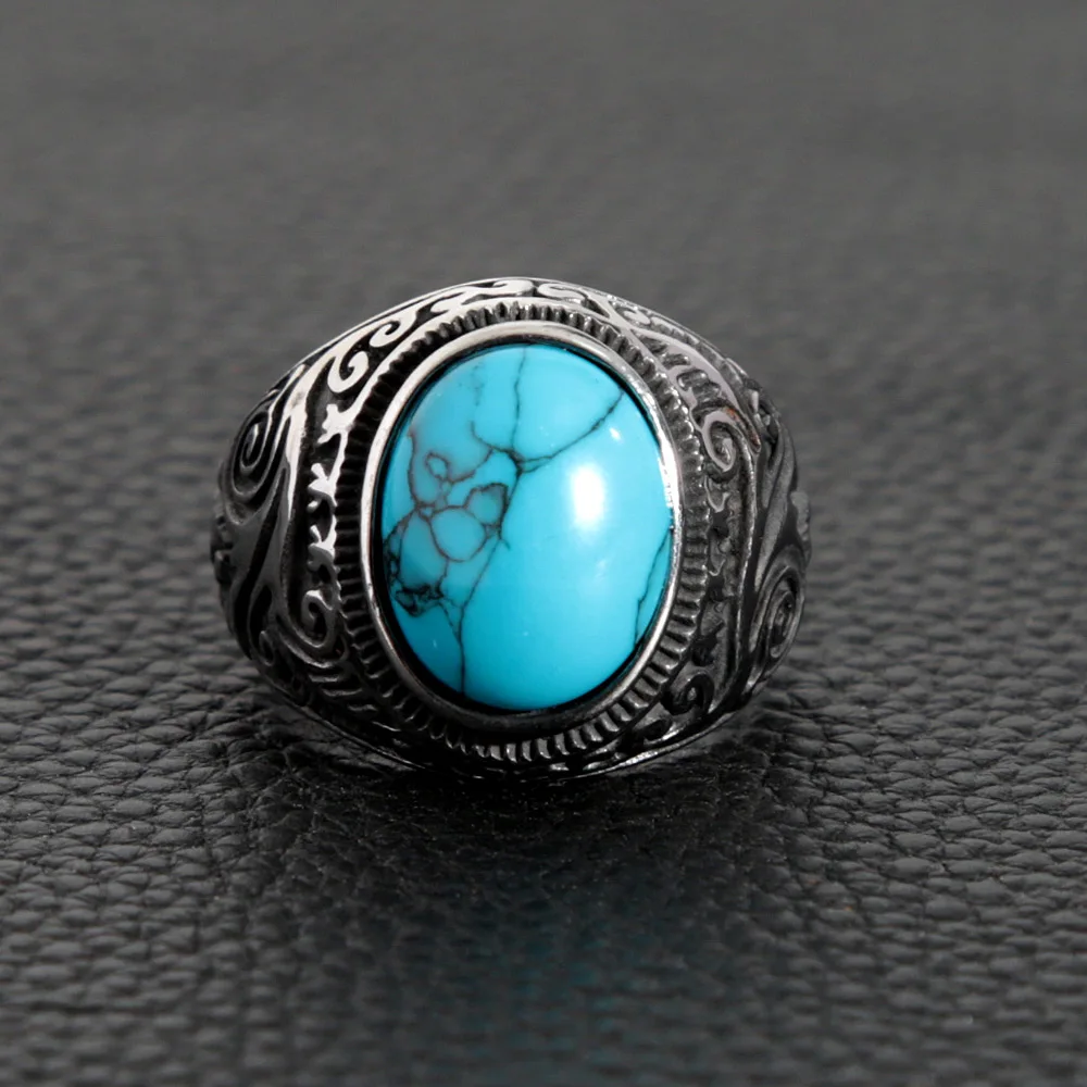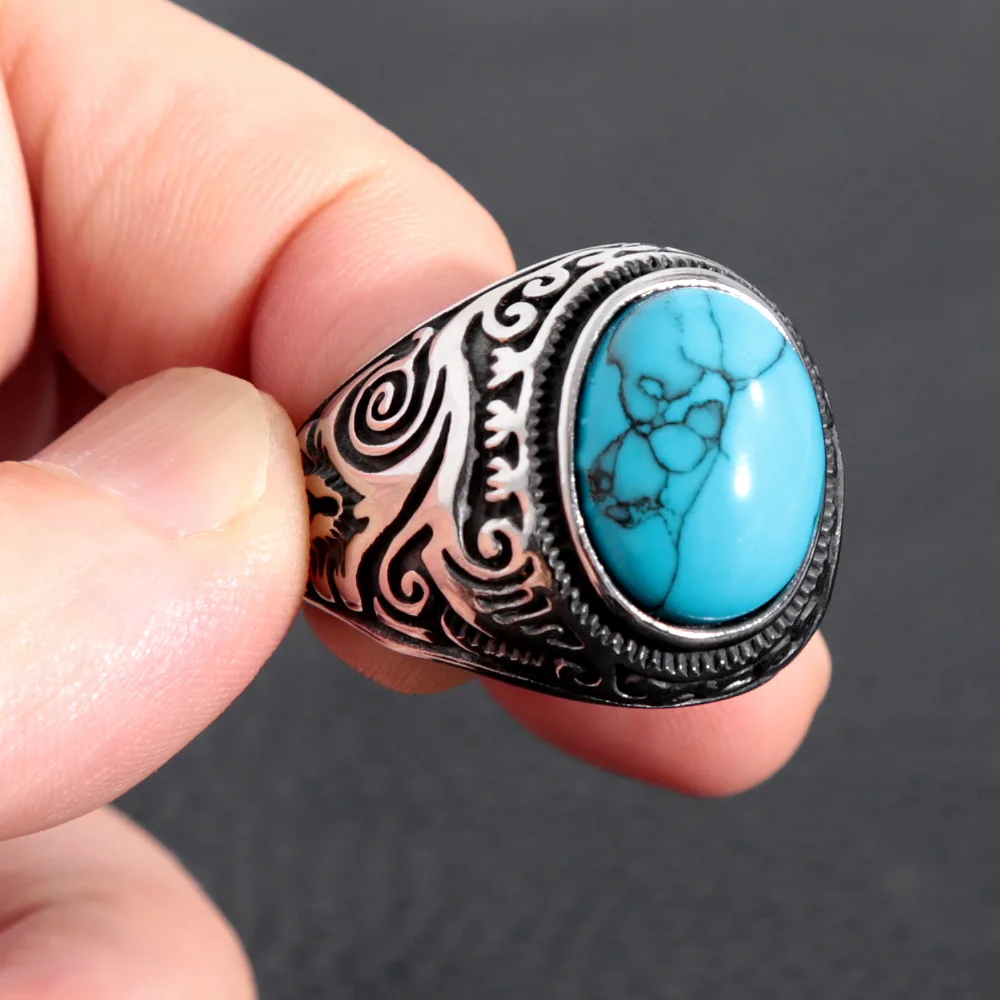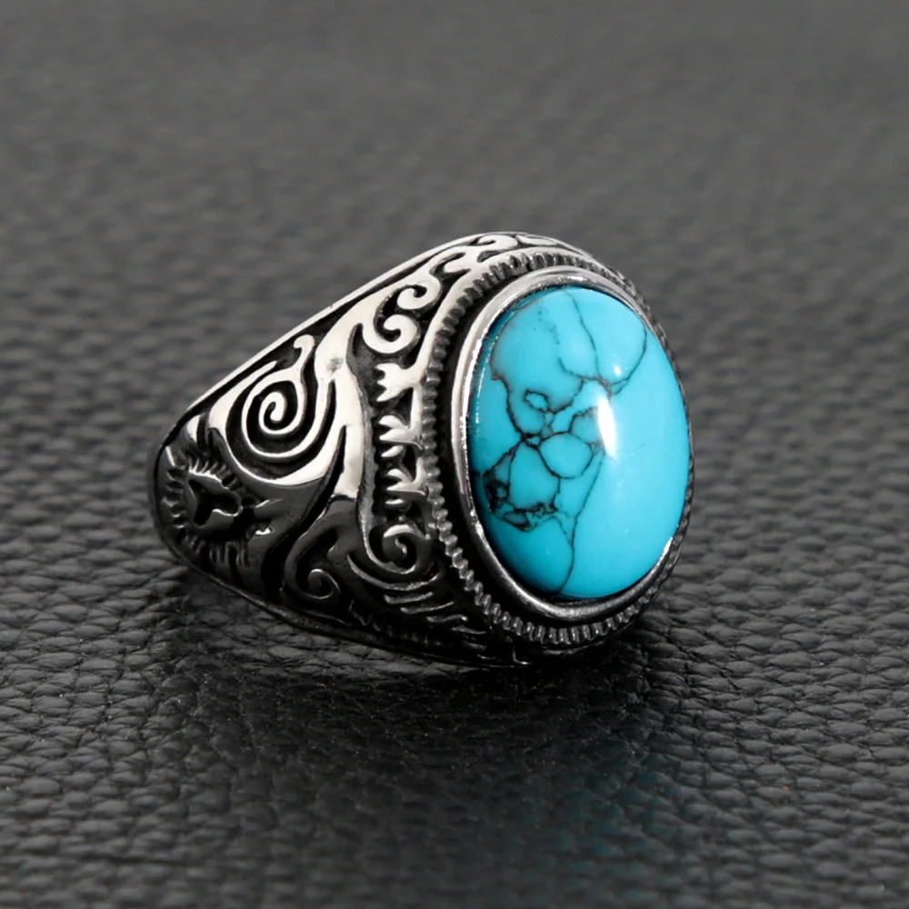 Название: винтажное мужское овальное кольцо с крупным камнем, обручальные кольца из нержавеющей стали с бирюзой в стиле панк, классические ювелирные изделия для мужчин и женщин, оптовая продажа