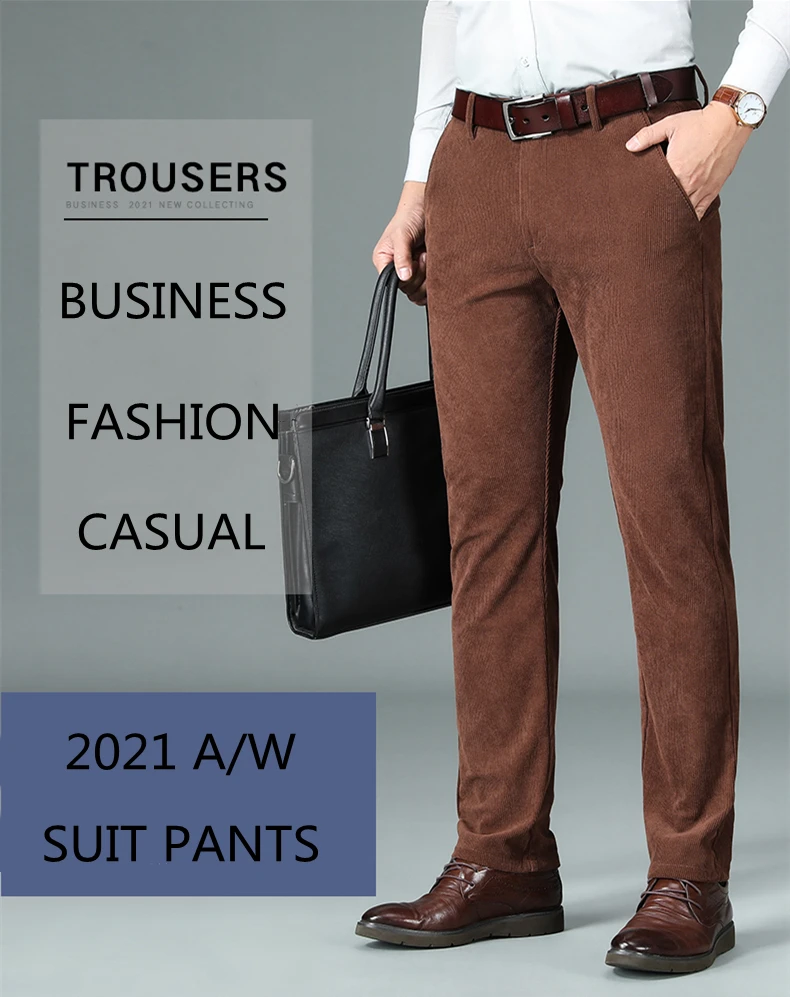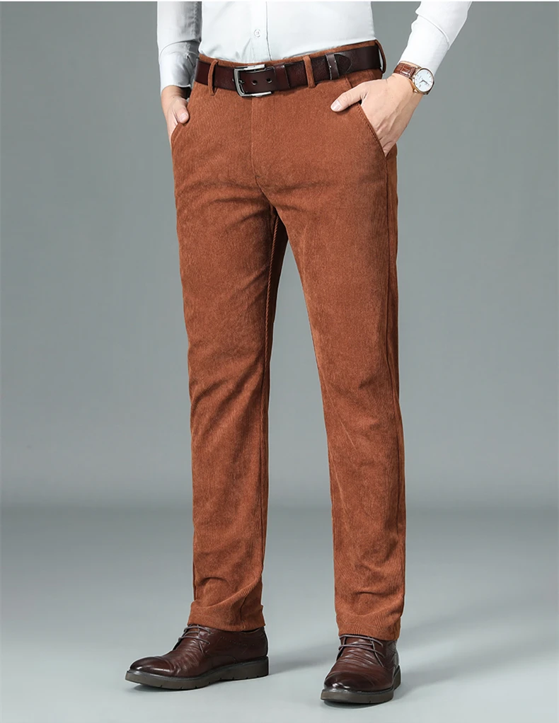 Брюки мужские вельветовые стрейчевые, прямые, на осеньзиму, 2021