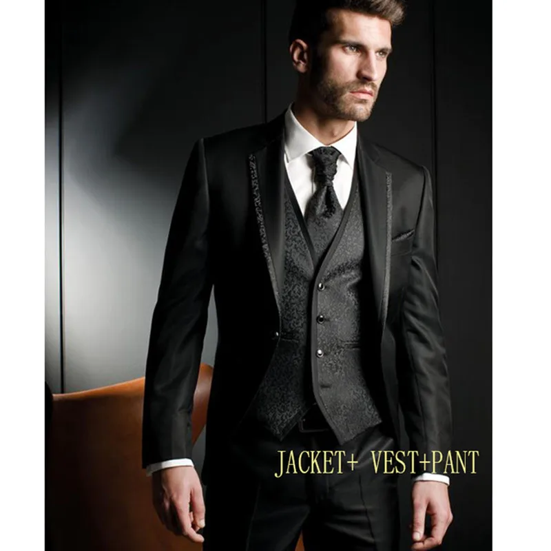 Новинка, модные стильные Черные смокинги для жениха на одной пугови...