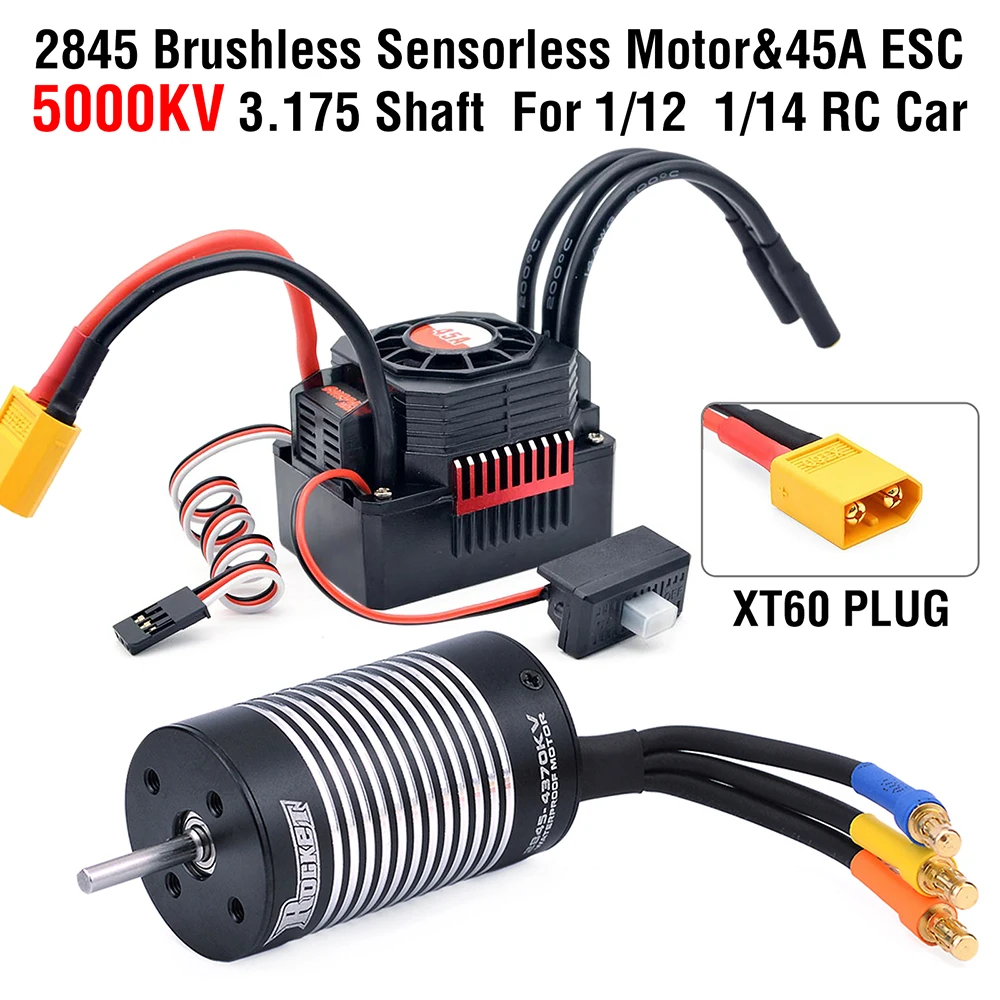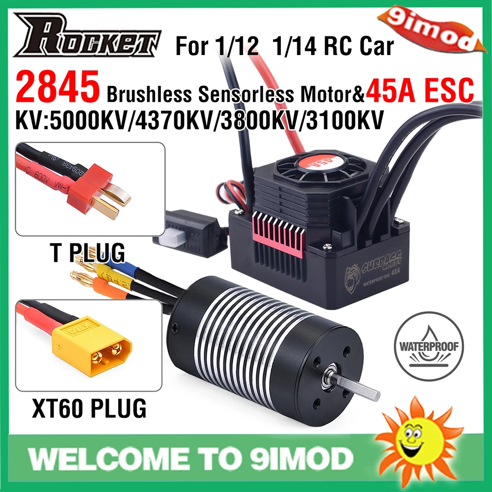 Rocket 2845 водонепроницаемый бесщеточный Бесконтактный двигатель 3100KV 3800KV 4370KV 5000KV w/45A ESC для Traxxas HSP Монстр на дороге 12428 1/12 RC автомобиль