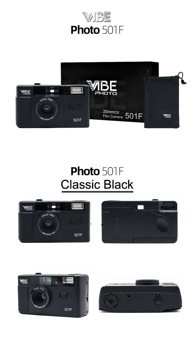Многоразовая пленка для камеры Vibe Vintage Retro 501F 35 мм, черна...