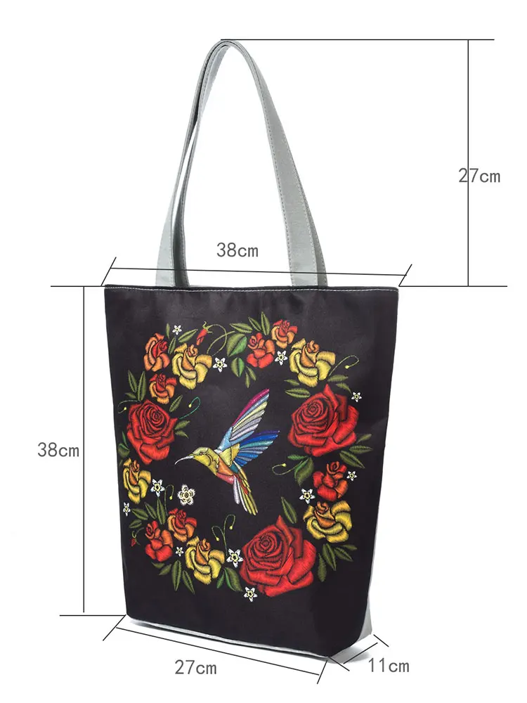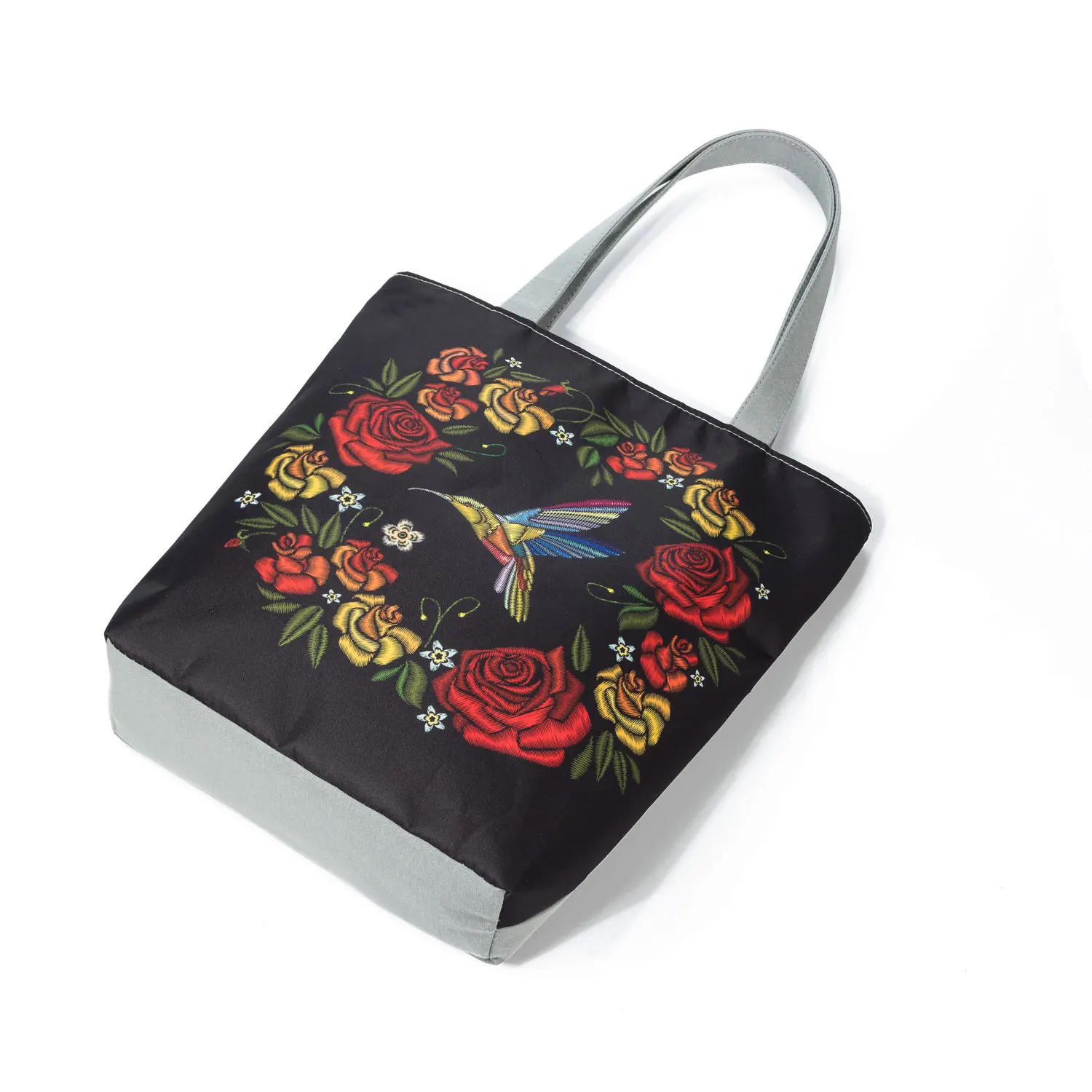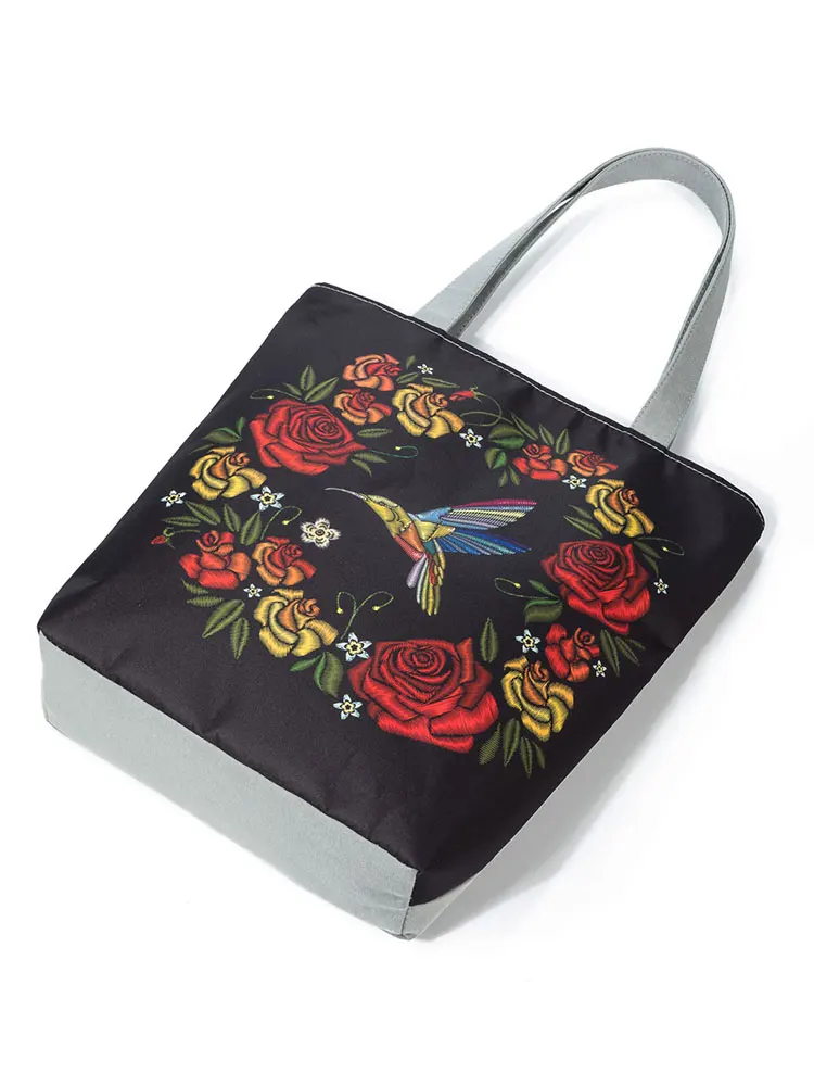 Женская сумка в стиле ретро с принтом роз и птиц, модные классические сумки на плечо с молнией, сумка-тоут, Портативная сумка для ланча
