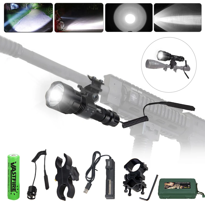 Светодиодный тактический фонарик 5000 лм, красныйзеленыйбелый, Q5T6, охотничий фонарь, водонепроницаемый уличный фонарь с батареей 18650, дистанционным переключателем