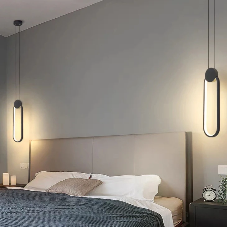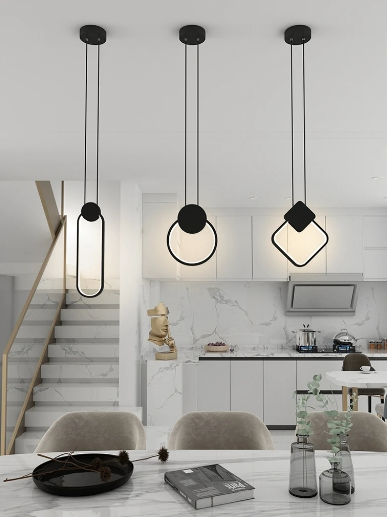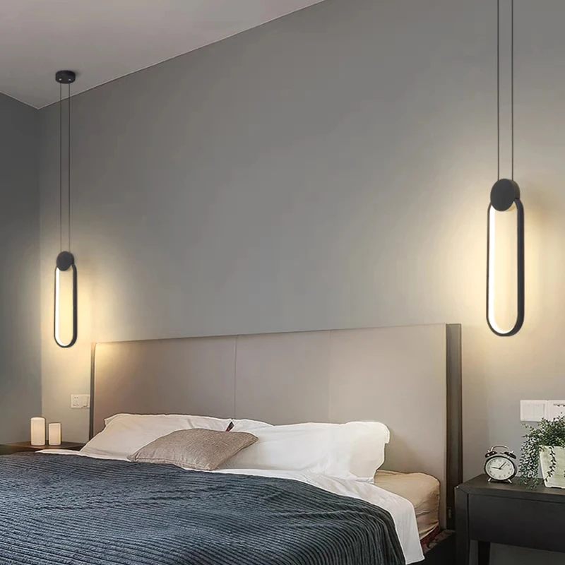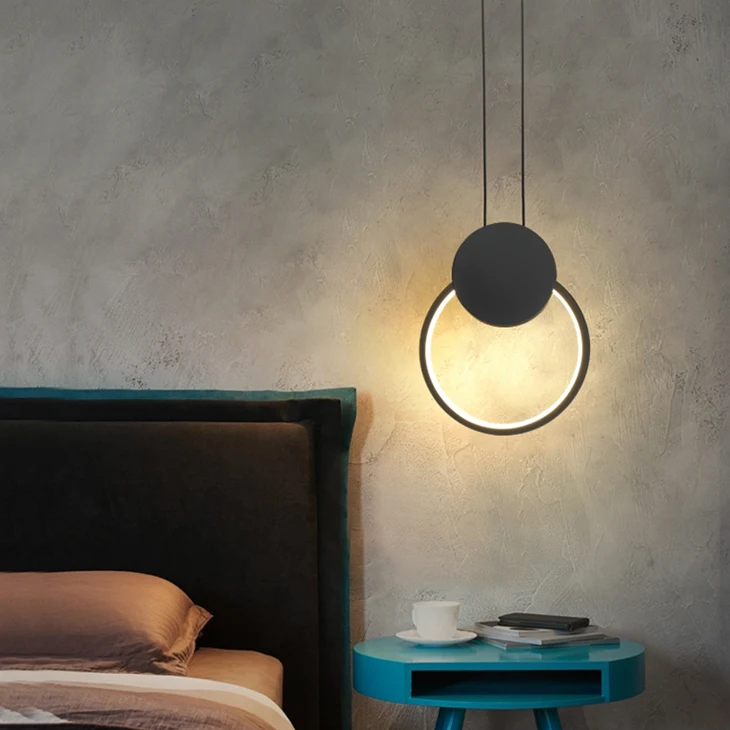 Минималистичный подвесной светильник с черным кольцом и длинной проволокой, СВЕТОДИОДНЫЙ Потолочный подвесной светильник с регулируемой яркостью для ресторана, спальни, прикроватная декоративная лампаНазвание продукта: подвесной светильник