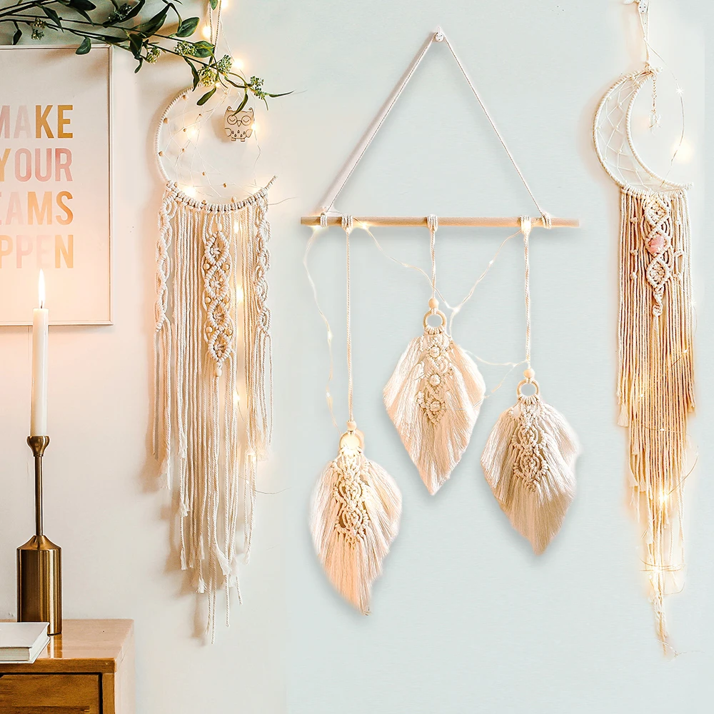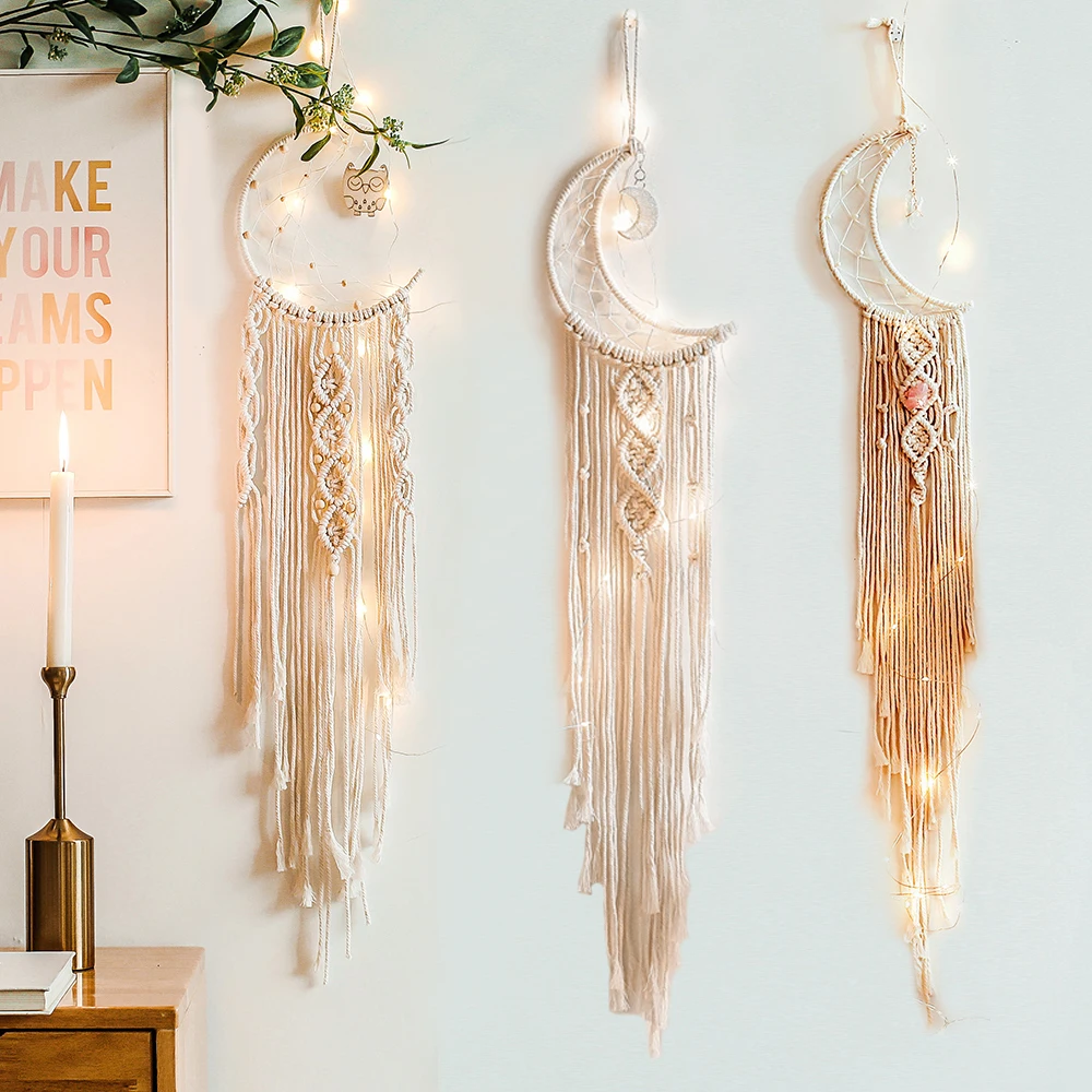 Скандинавская звезда, луна гобелен из макраме, украшение в стиле бохо, настенное украшение для дома, спальни, Ловец снов, декор для детей, рождественский подарок, светильник