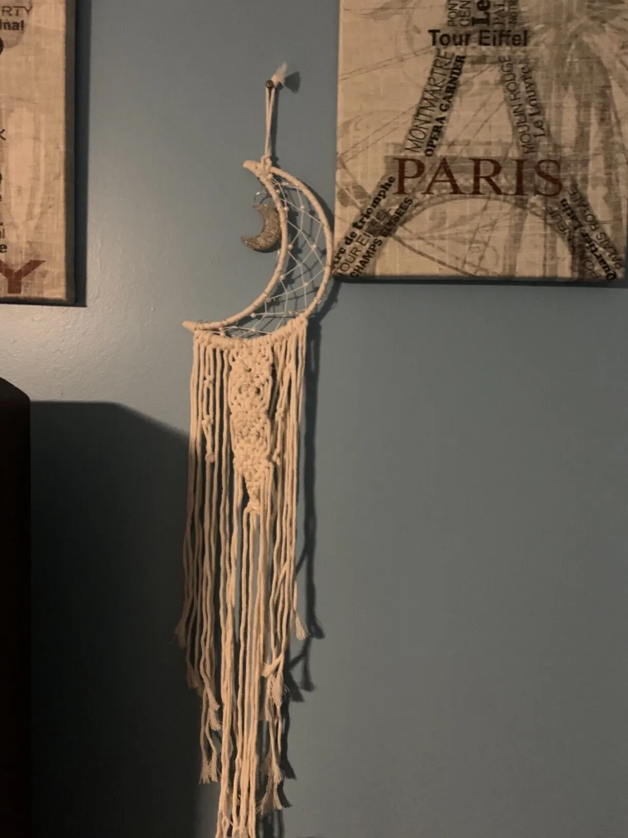 Мне это очень нравится. Я получил их, чтобы они были с моей небесной темой в моей спальне, они идеально сочетаются с макраме растительных вешалок, которые я получил недавно. Они очень ярко-белые, и акценты делают их просто идеальными, мне это нравится! Они намного больше, чем я думал, они будут, никаких жалоб здесь. Они выглядят вручную, и я люблю добавленные Звездные и лунные акценты. Отличный подарок! Очень богемный или цыганский стиль