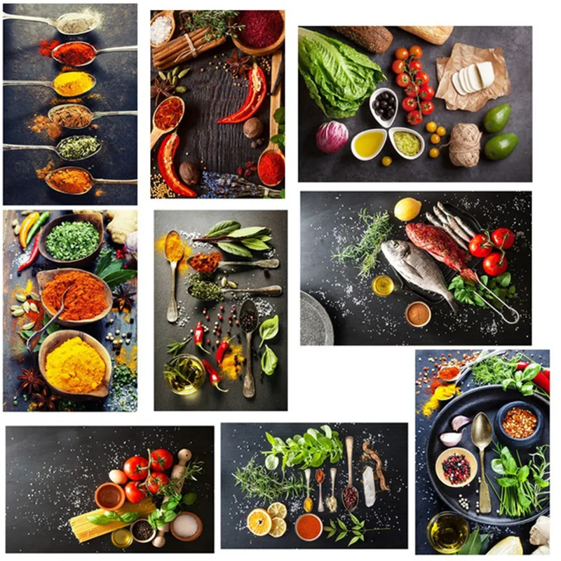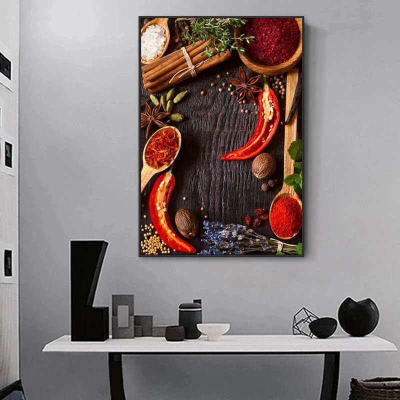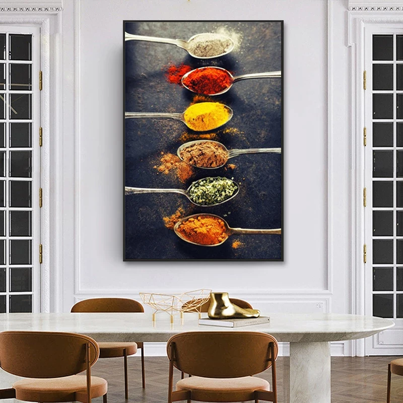 Картина на холсте из хлопьев, специй, ложки, перца, кухни, плакат, печать, настенное искусство, картина в скандинавском стиле, Современная еда, домашний декор, модульный