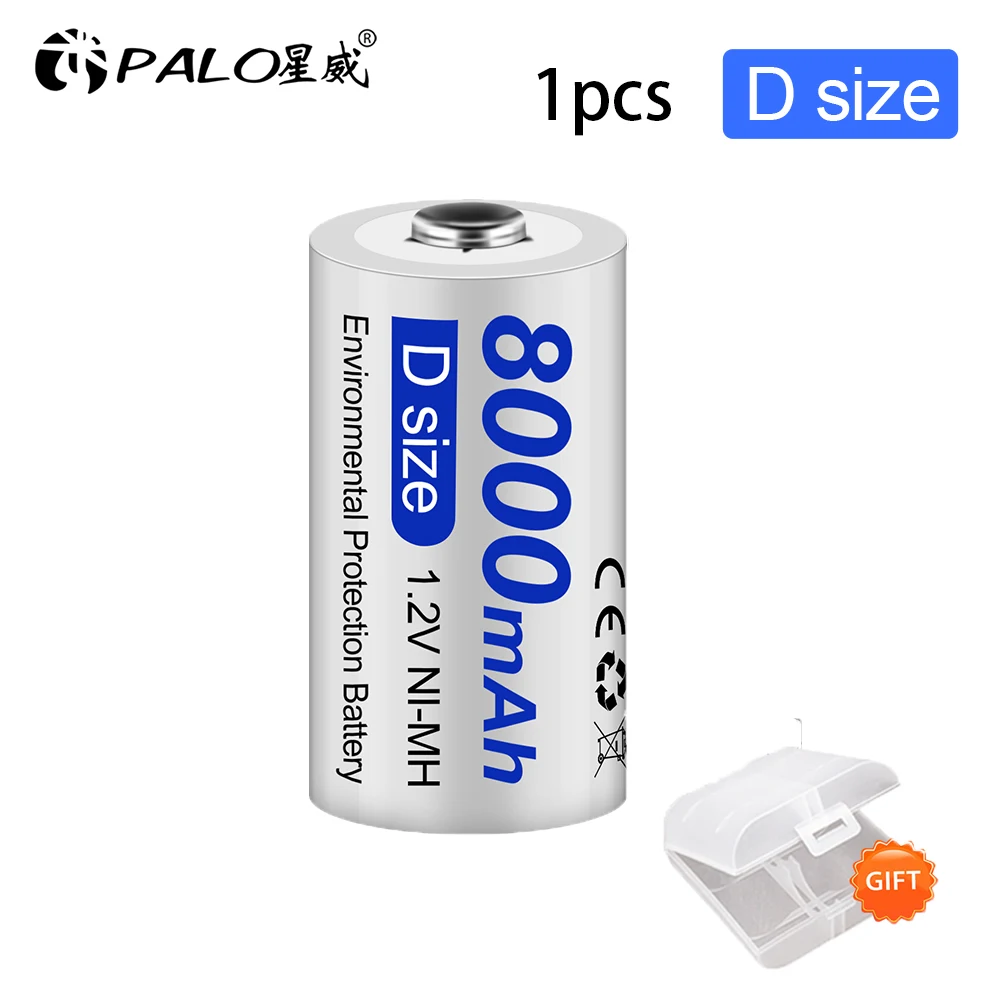 Аккумуляторная батарея PALO D Size R20, никель-металлогидридные аккумуляторы 1,2 в, 8000 мАч для игрушек, радио, микрофона, газовой плиты