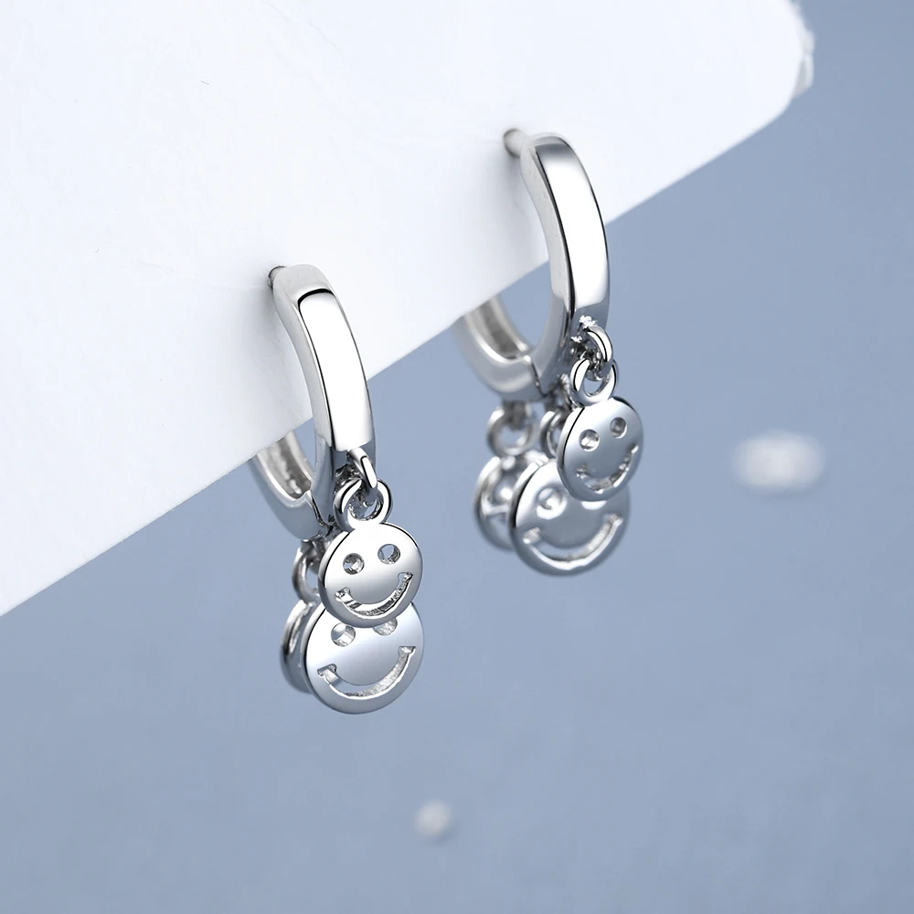 Серьги-подвески серебряные женские в стиле панк с изображением смай...