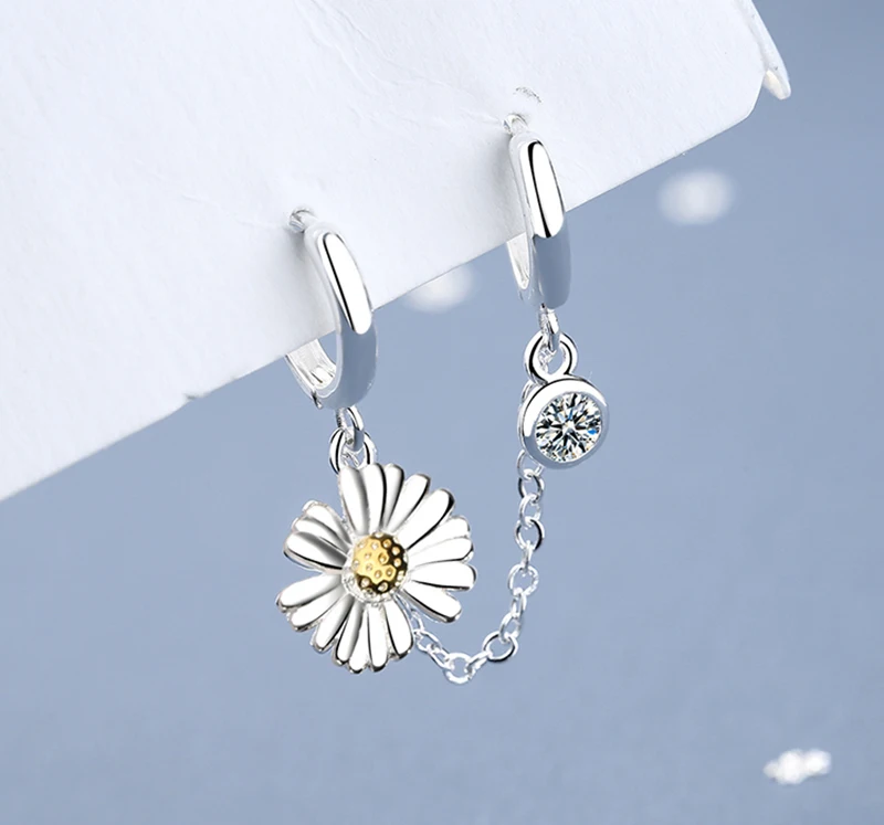 Оригинальные серьги из серебра 925 пробы с маргариткой, с двумя отв...