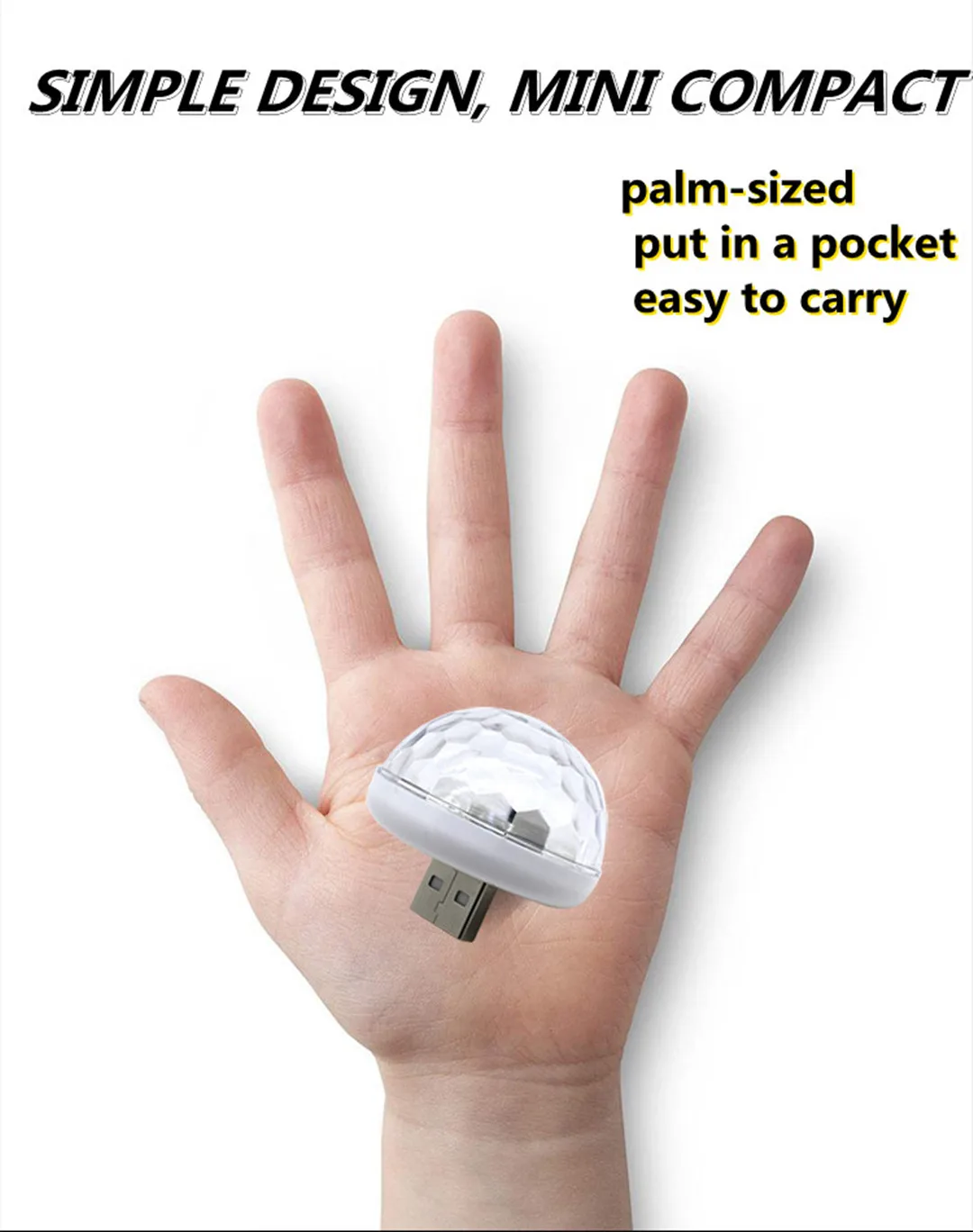 Подходит для украшения автомобиля, дискотеки, бальных танцев, КТВ, бара, сцены, клуба, вечерние, оборудования с интерфейсом USB и т. д.