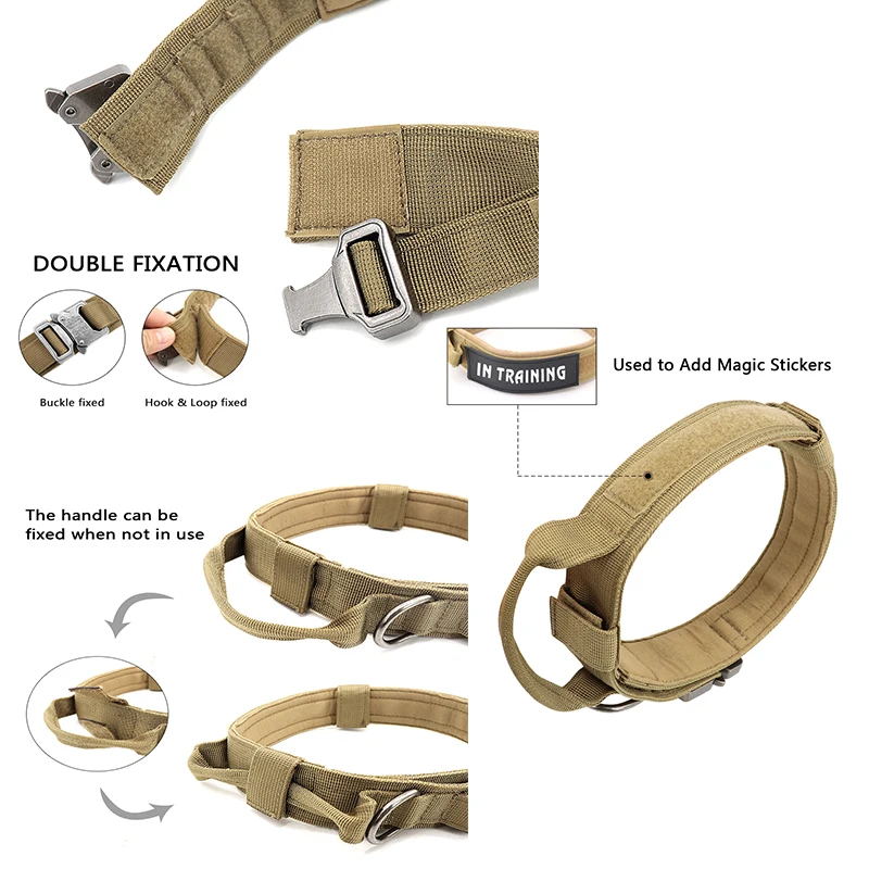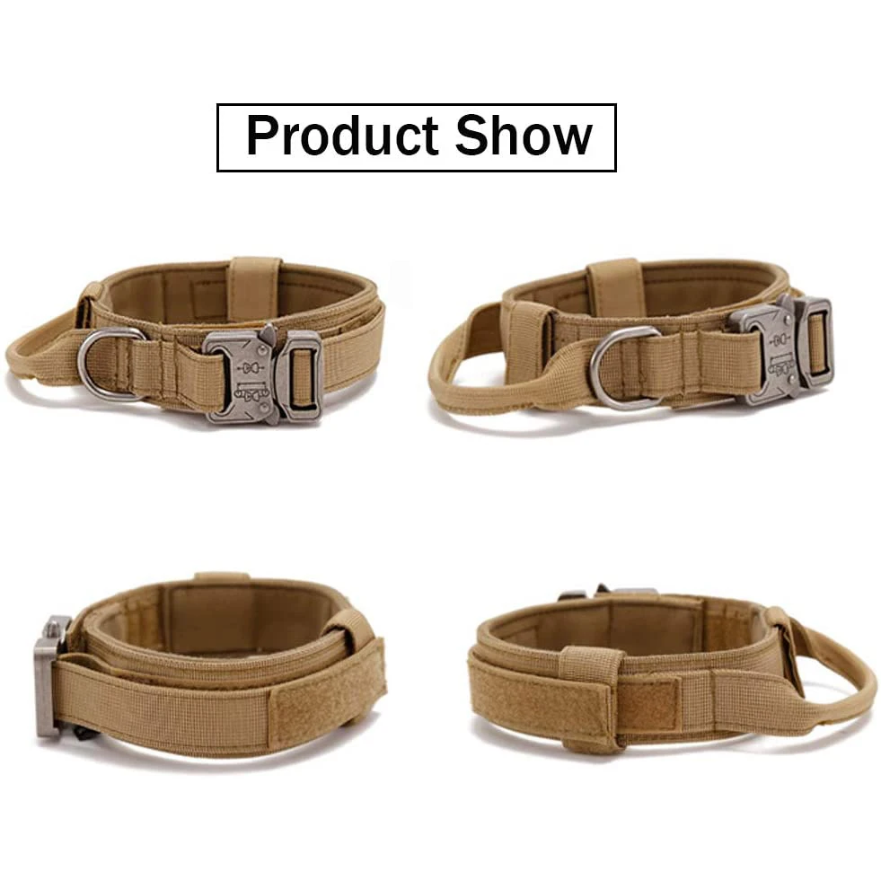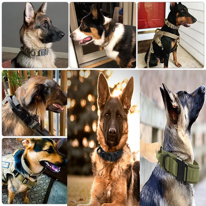 Имя:Военный Тактический ошейник для собак, немецкий ошейник Shepard среднего размера ошейники для больших собак для тренировок при ходьбе, двойная ручка управления ошейником для собак