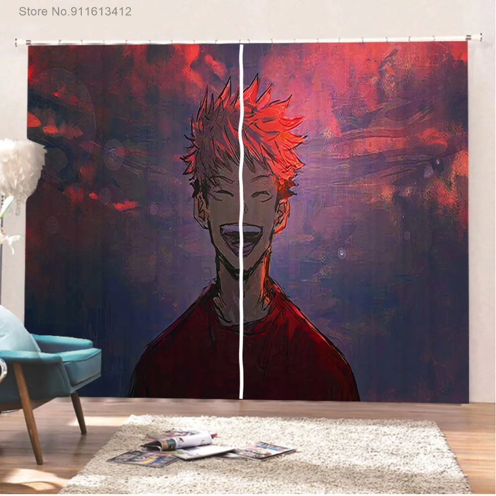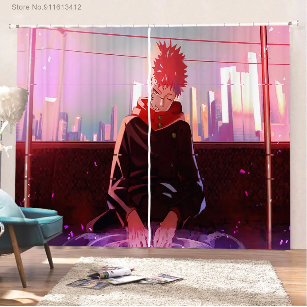 Светонепроницаемые шторы juютсу Kaisen, занавески для окон гостиной с 3D принтом, 2 панели, Мультяшные Японские Аниме украшения для окон