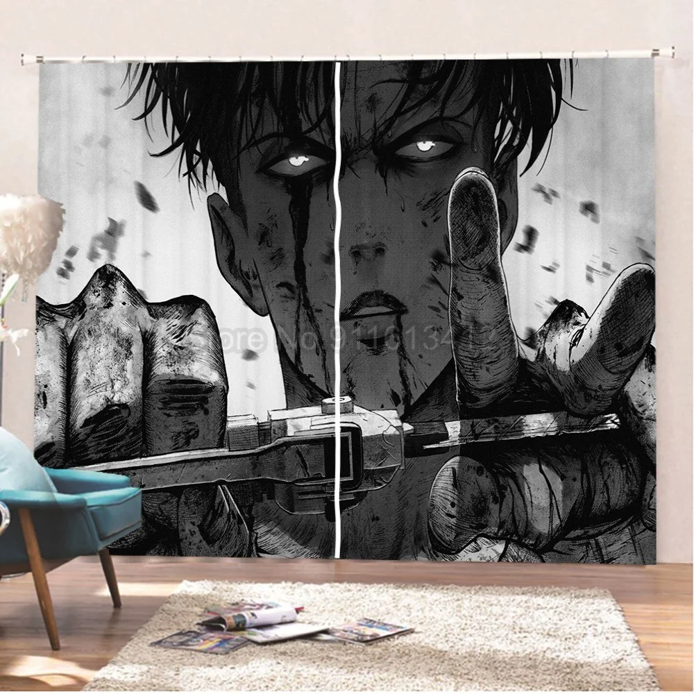Светонепроницаемые шторы атака на Титанов, 2 панели, Мультяшные шторы с 3D принтом, оконные занавески для дома